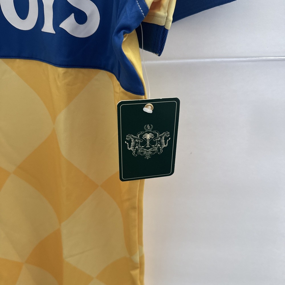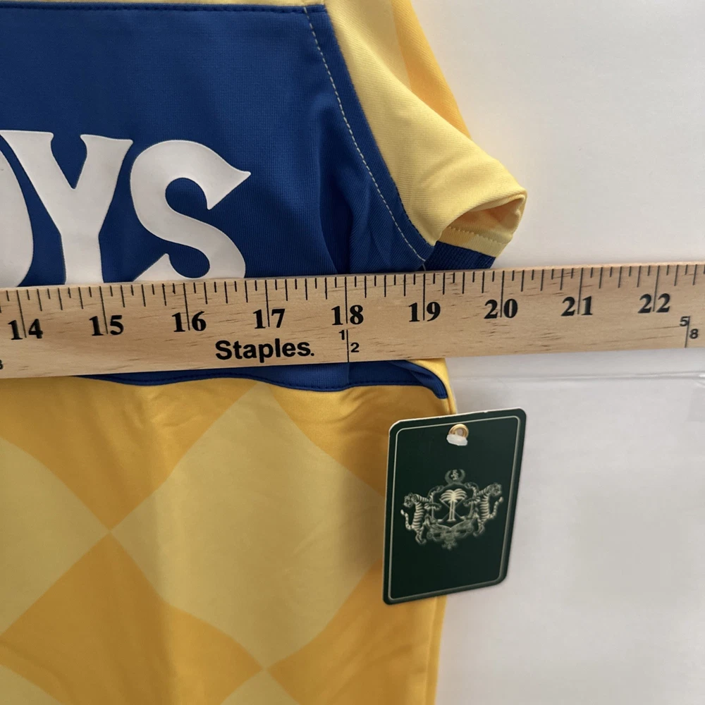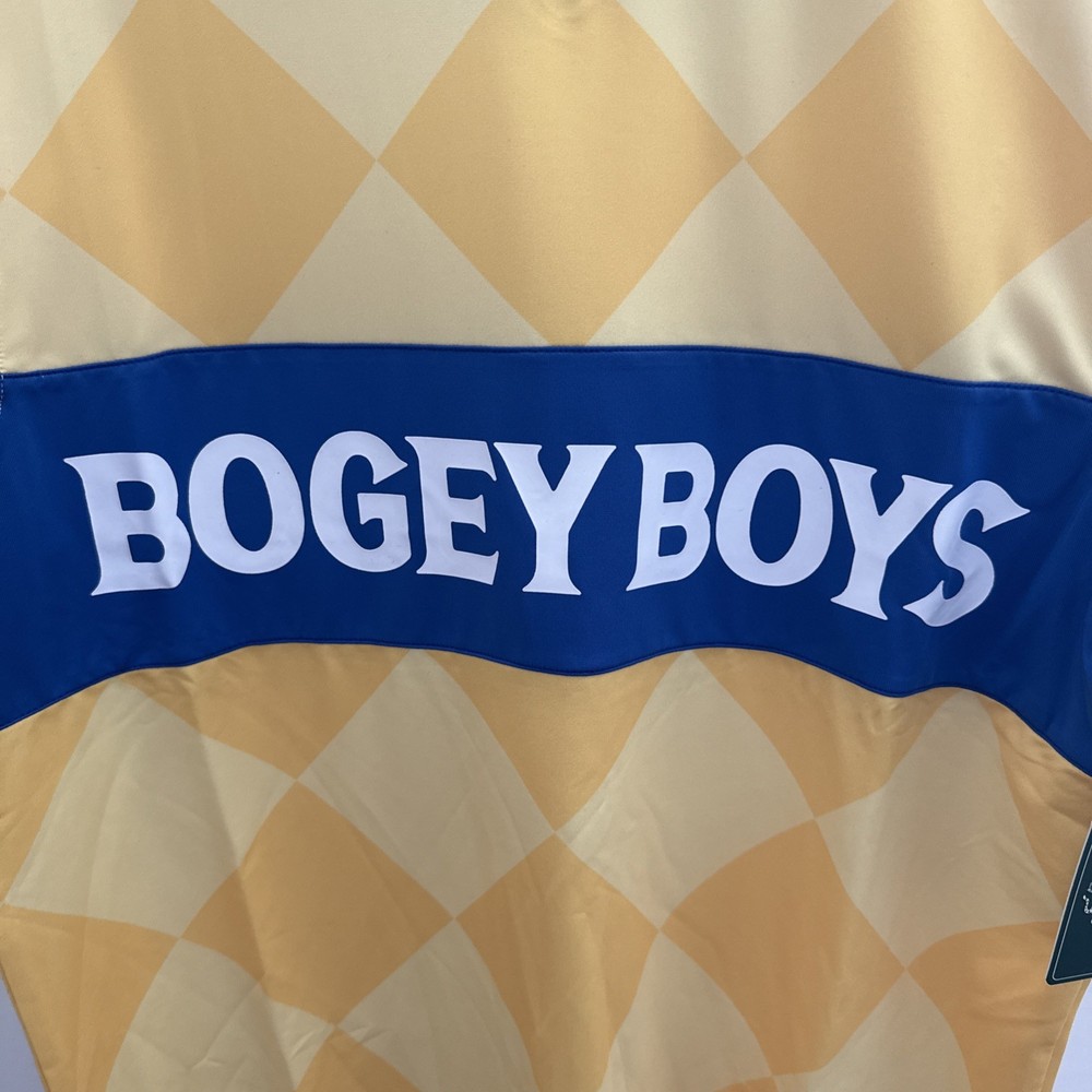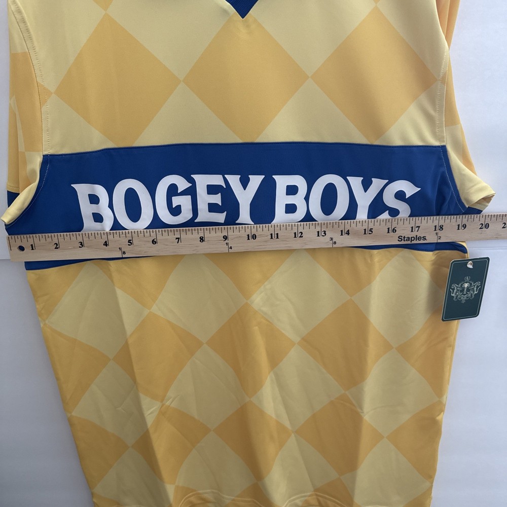 Crafted for comfort and style, the Bogey Boys Macklemore Check Golf Polo Shirt is a versatile addition to any wardrobe. This men's size medium polo features a classic spread collar, short sleeves, and a lightweight polyester blend fabric that wicks moisture away, ensuring you stay dry and comfortable throughout the day. Its microfiber construction provides breathability and stretch, accommodating a full range of motion, making it ideal for various activities such as golf, cycling, or casual outings. The shirt's check pattern in a striking blue and yellow palette adds a touch of sophistication to casual and cocktail occasions alike. Easy care and machine washable, this polo is designed for the modern man who values both performance and style. Whether you're on the course or enjoying the city, the Bogey Boys polo shirt is equipped to keep you looking sharp and feeling great in all seasons.