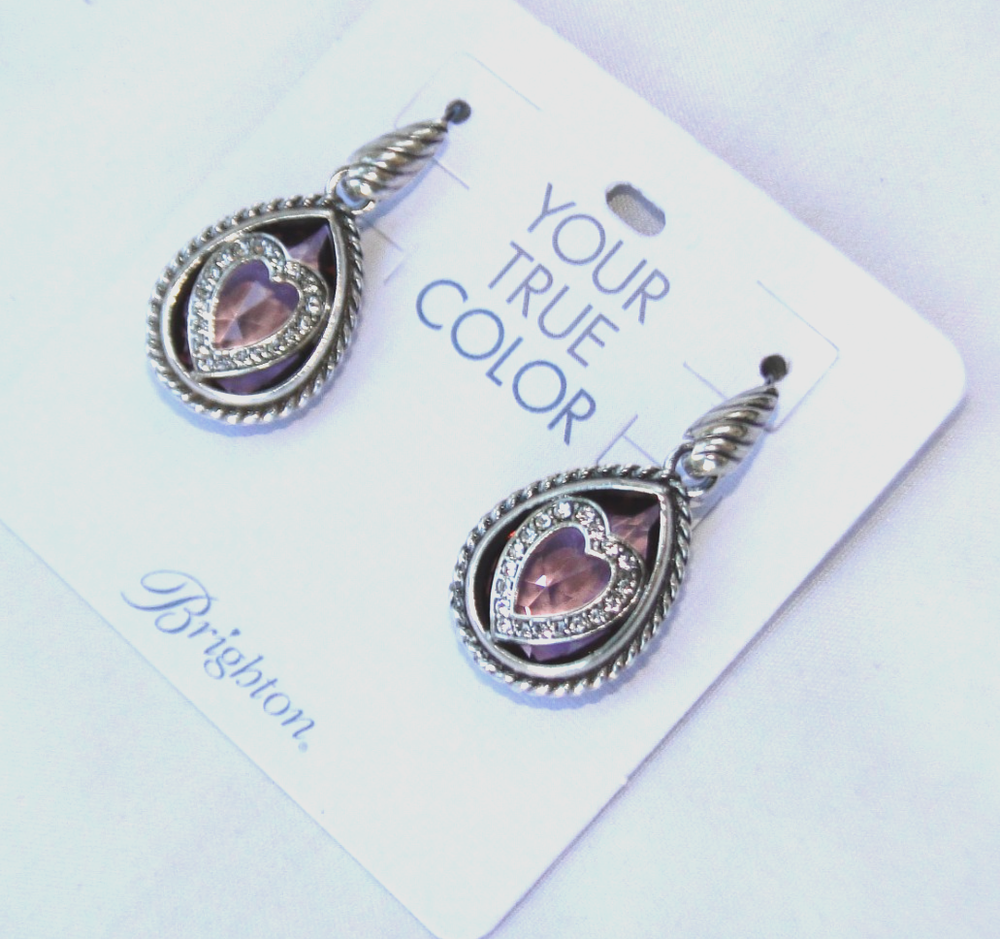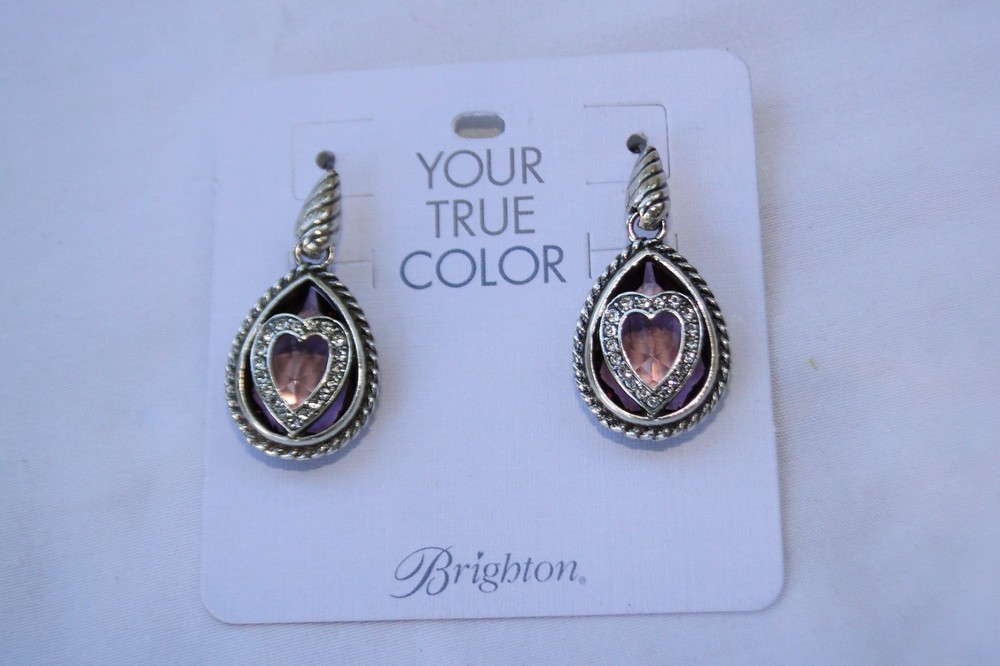 Brighton Your True color Courageous Heart collection features faceted pink teardrop crystals with a crystal heart overlay! Earrings: Width: 3/4" Type: French Wire Drop: 1 1/4" Material: Swarovski Crystals Finish: Silver plated New with tag Necklace : Finish: silver plated Material: Fine quality crystal Pendent Drop: 1" Reversible Length: 16" - 18" adjustable New with tag Please feel free to ask your questions.