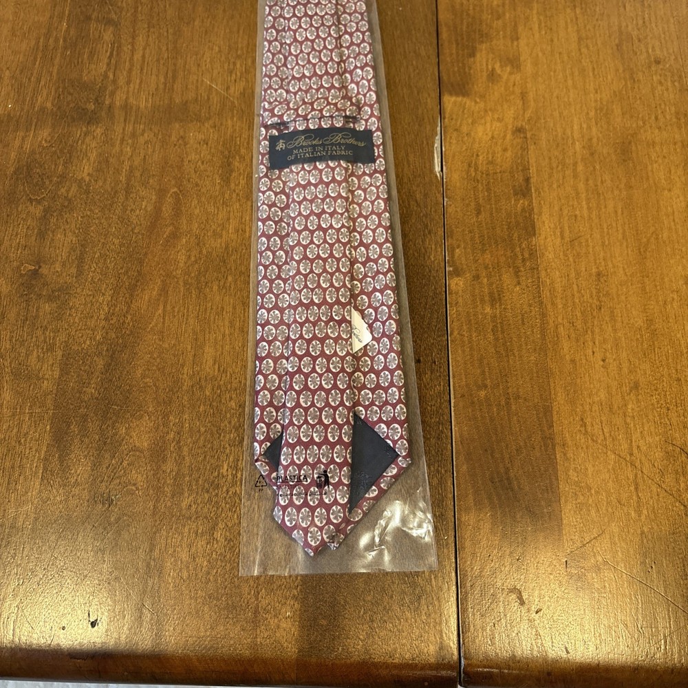 This product is a classic Brooks Brothers men's silk tie in a maroon burgundy color. Made in Italy from 100% Italian fabric, it features a geometric pattern and traditional 3 3/8" width. The tie is a classic 59" long, perfect for adding a touch of elegance to any formal outfit. Known for their quality and style, Brooks Brothers ties are a timeless accessory for any man's wardrobe.
