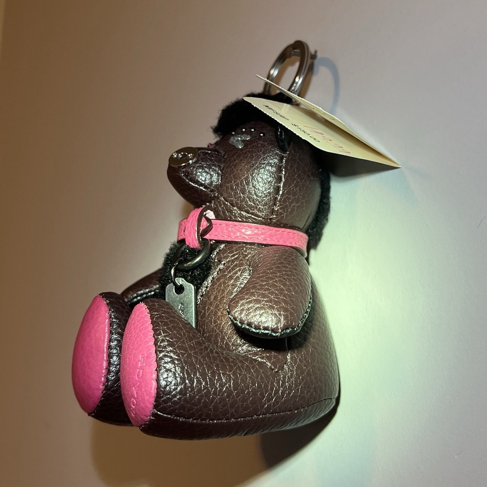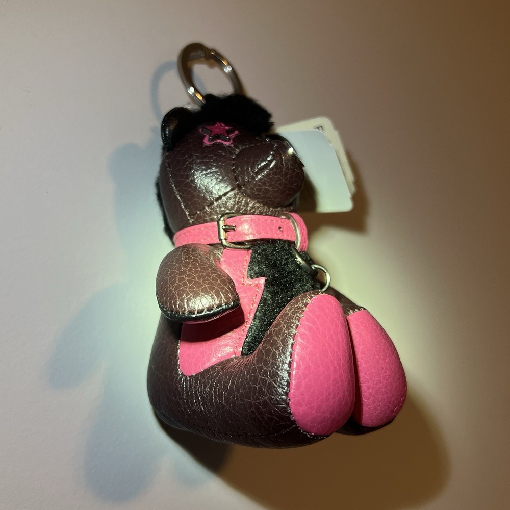 NWT COACH Outlaw Brown Pink Glitter Studded Teddy Bear Keychain Charm