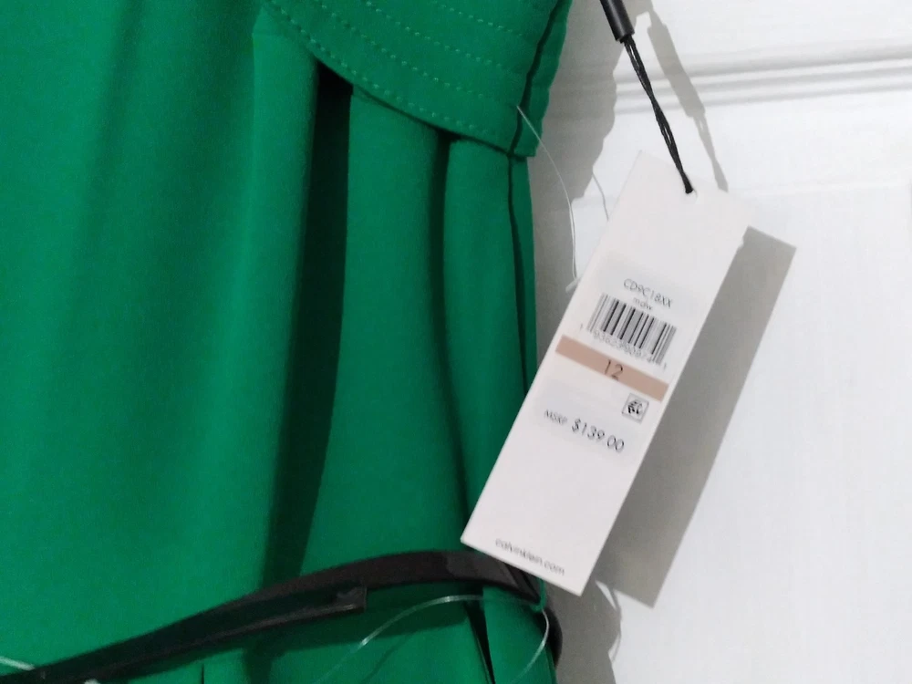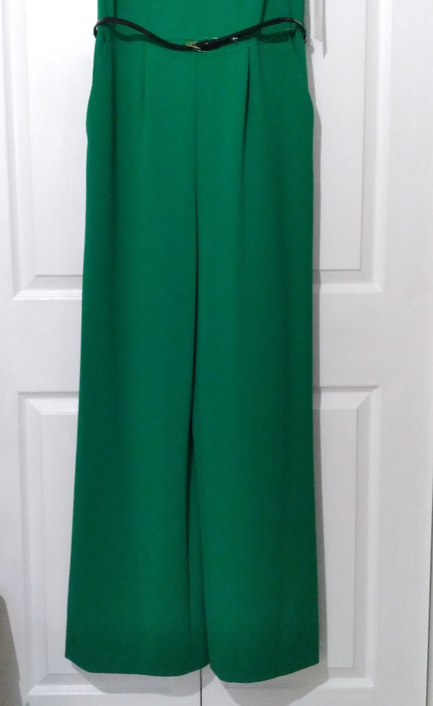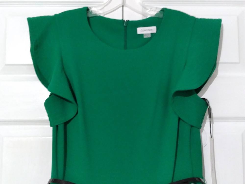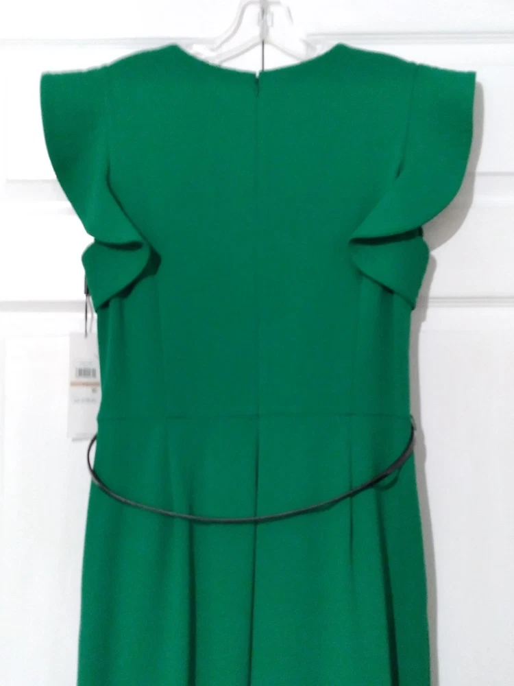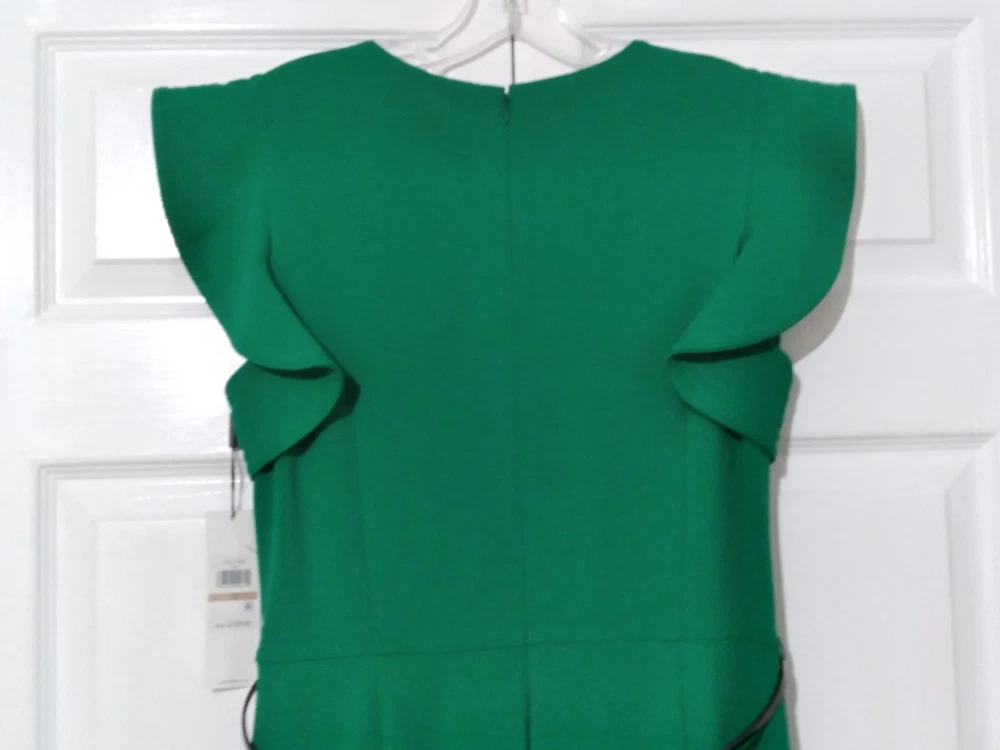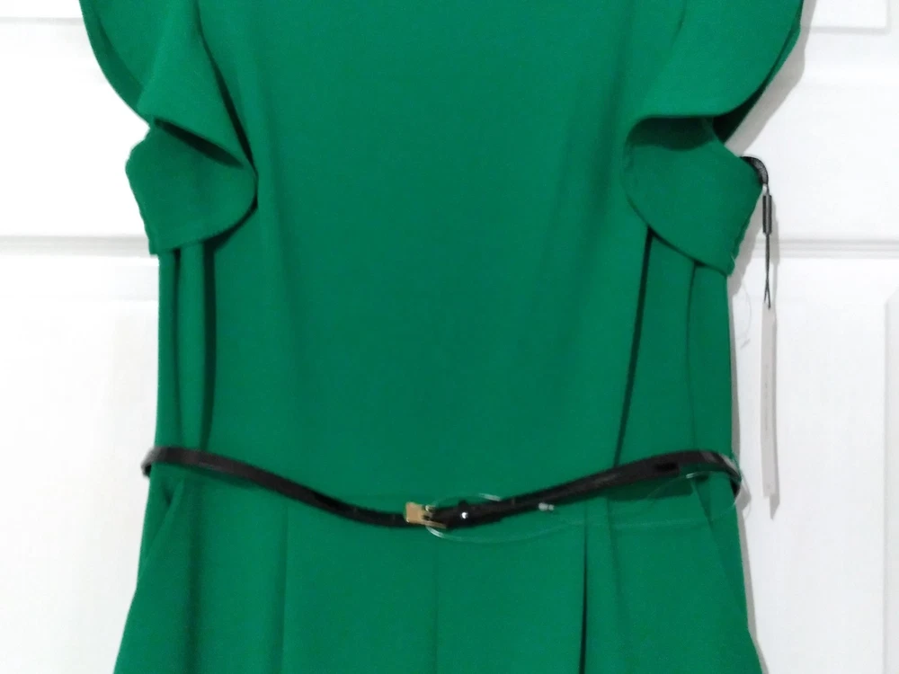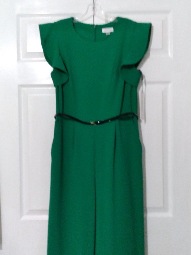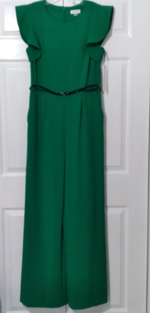 NWT Calvin Klein Green Wide-Leg Jumpsuit Flutter Sleeve Belted Pockets Size 12
