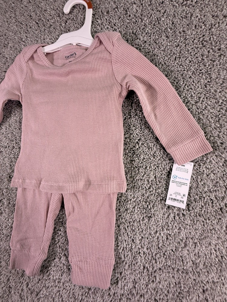 $ 6.66NWT Carter's Just One You 6 Months Pink Waffle Knit Thermal Pajama Set 2pc Snug