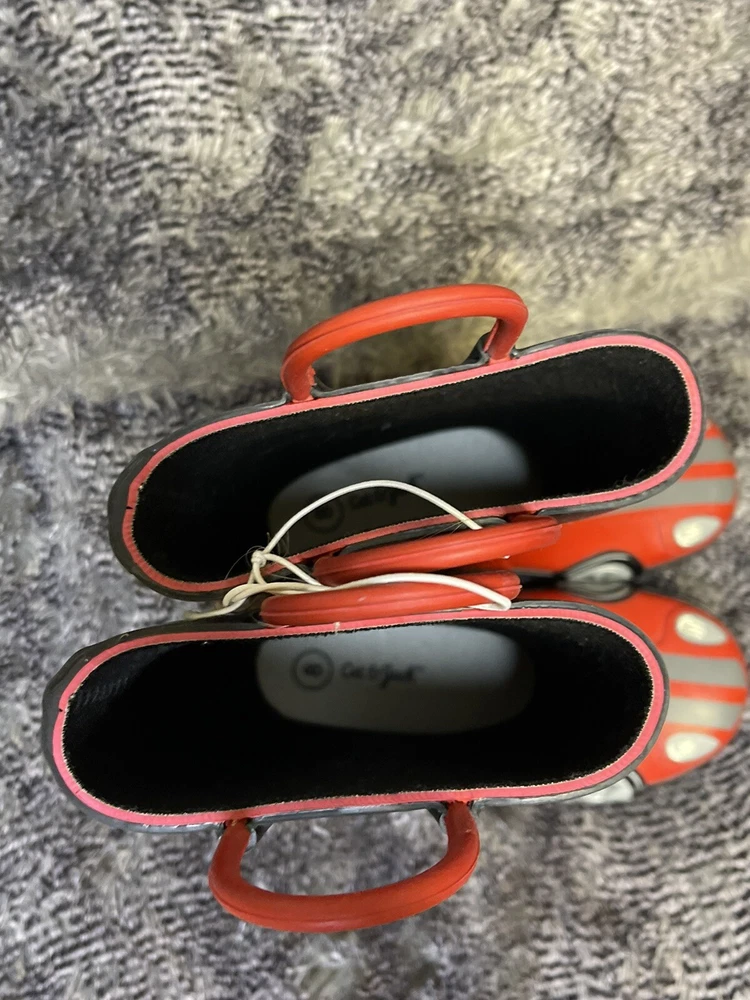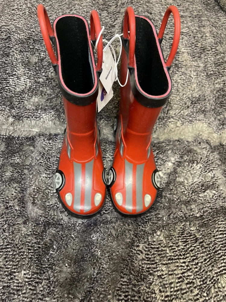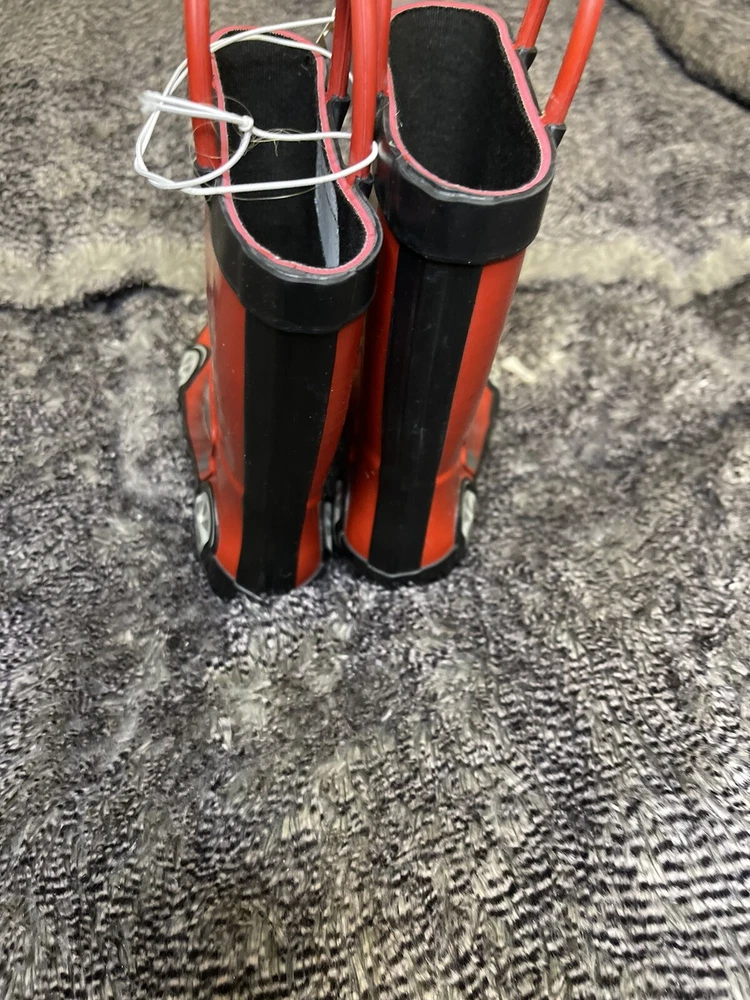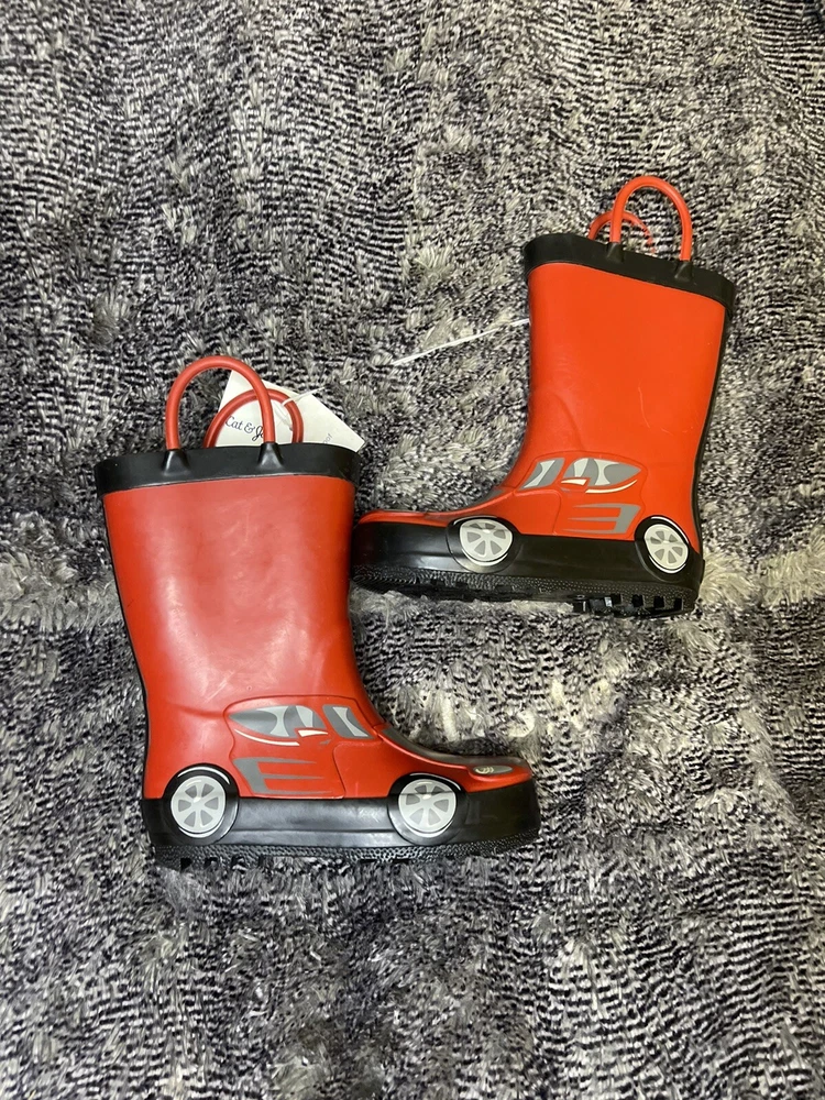 Brighten up your child's rainy day attire with these vibrant Cat & Jack kids' rain boots. These boots are perfect for both boys and girls in size 8 and feature a stylish black and red color scheme with a fun race car accent. They're made from durable, waterproof materials to keep little feet dry and comfortable, and the rubber outsole provides excellent traction on slippery surfaces. These mid-calf rain boots are great for a variety of occasions, from casual walks to more adventurous activities like hiking and biking. They're also suitable for wearing to school, parties, and other events. With their versatile design and practical features like a round toe and slip-on closure, these boots are sure to become a staple in your child's wardrobe.