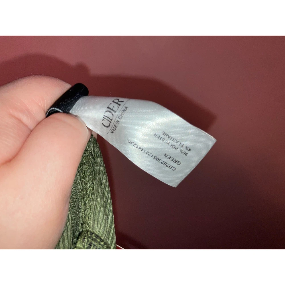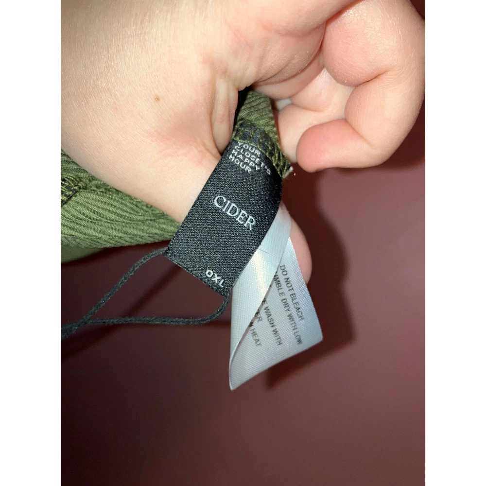 Brand: Cider Size: 0X Color: Green. Condition: NWT does have some dirt on the bottom of the pant legs that should definitely come out in the Wash. Measurements: Armpit to armpit 18 inches, Stretches to 25 inches, Inseam 32 inches, Length 62 inches. Materials: 96% Polyester, 4% Elastane. Made in: China. Washing Instructions: Machine Wash. Style: Wide Leg Jumpsuit. Offers welcome! Bundle to save! Tags: Wide Leg, Ribbed, Smoke-free, cat-friendly home.