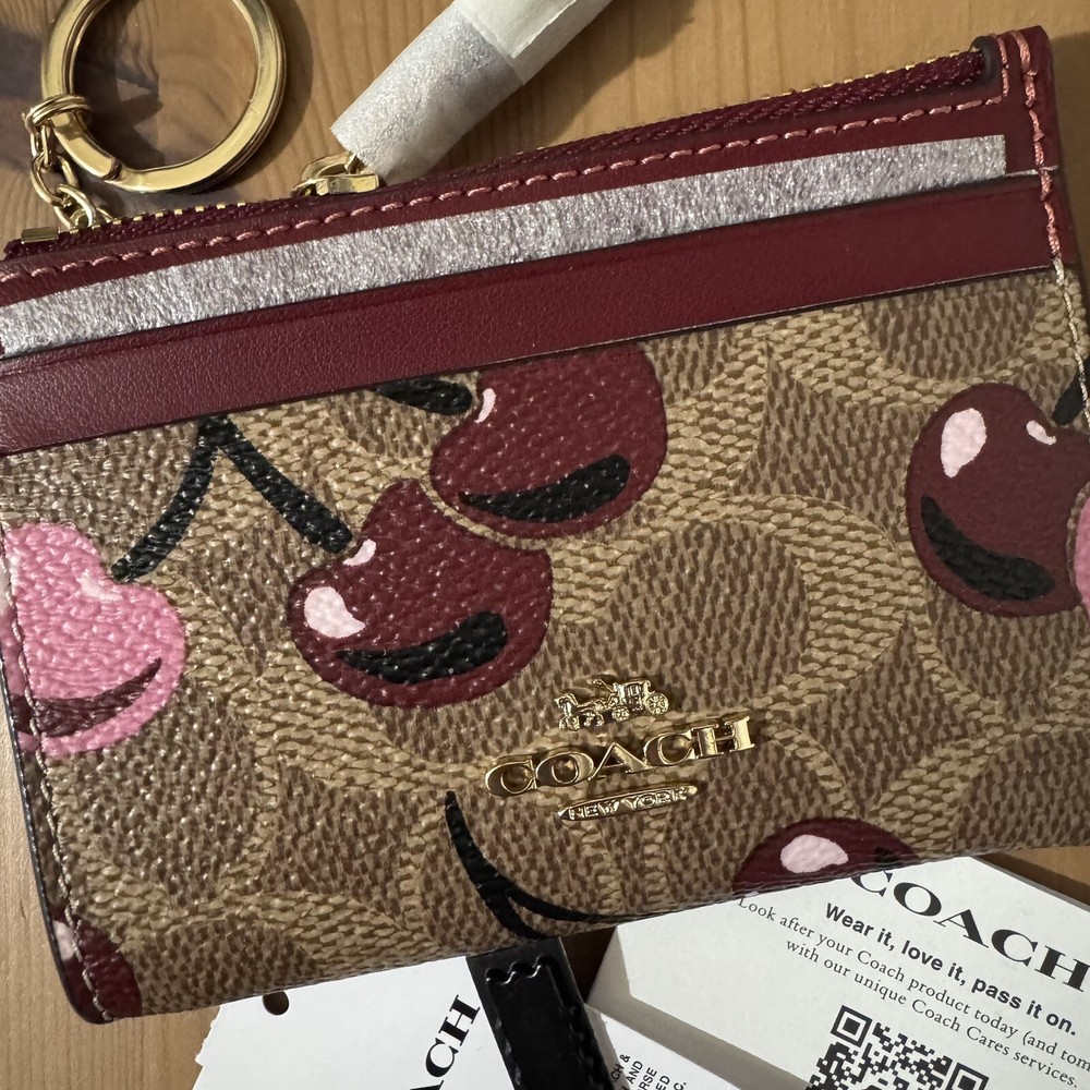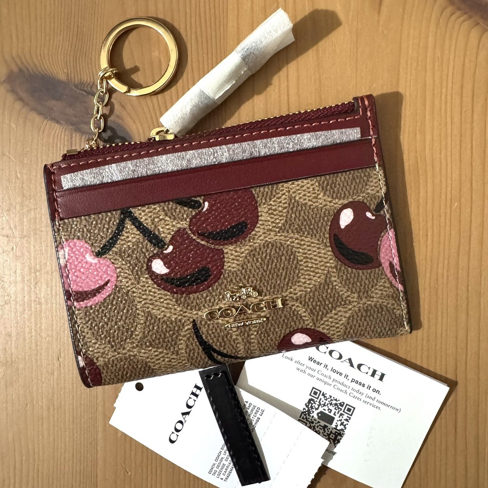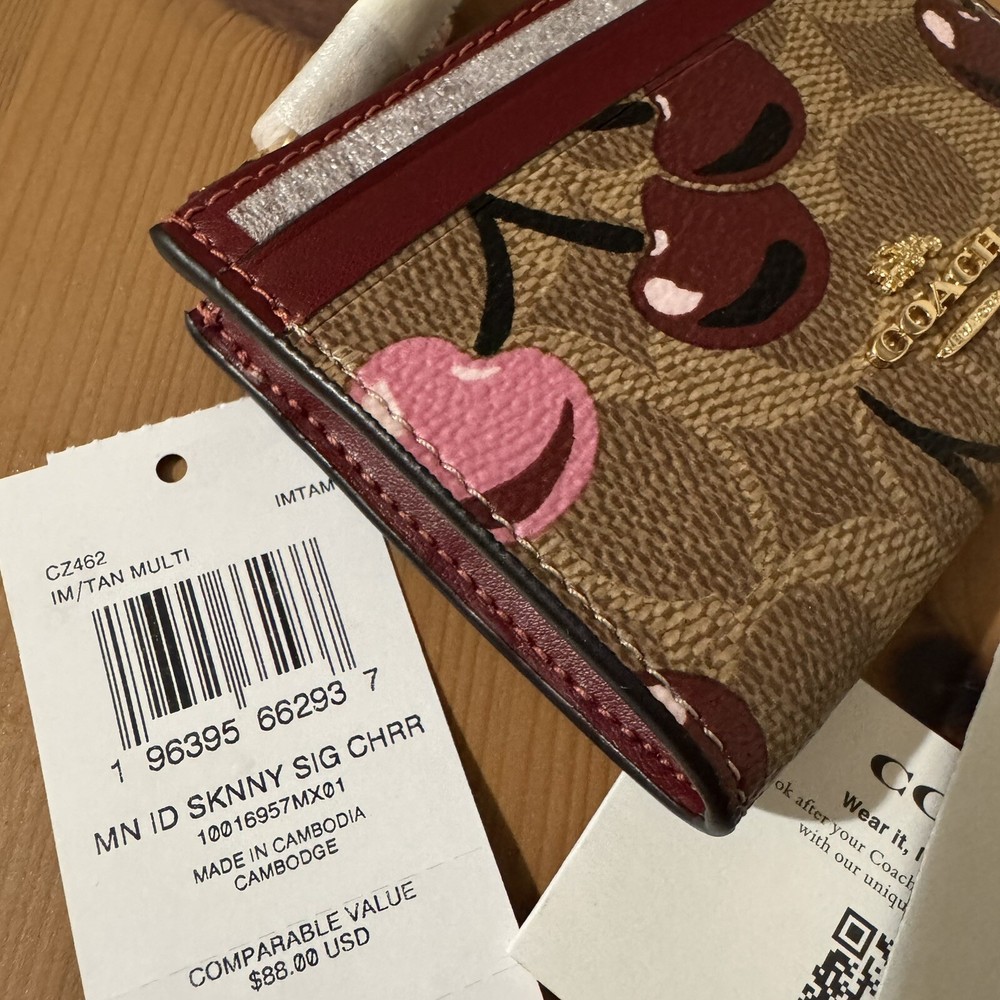 NWT Coach Mini Skinny ID Case Signature Canvas Cherry Print πŸ’