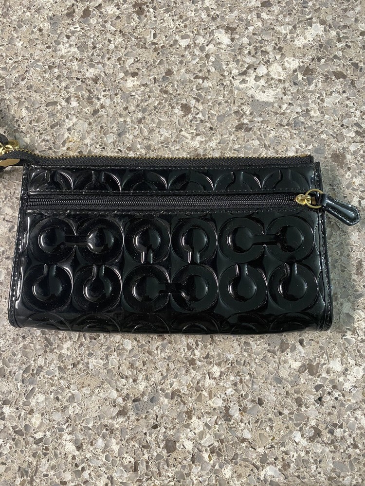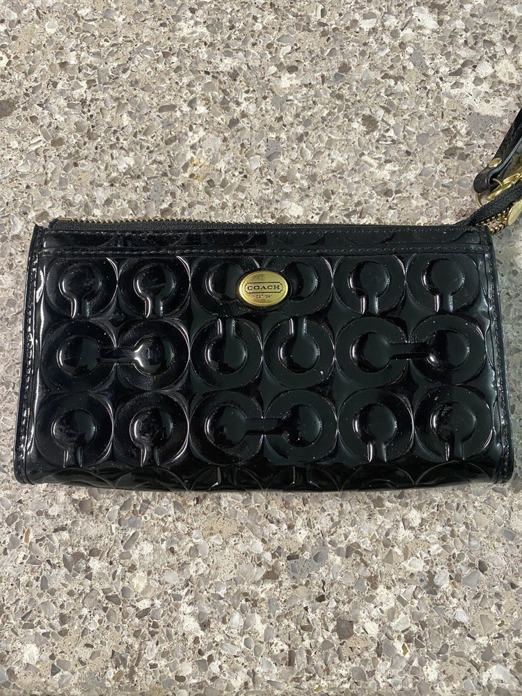 NWT Coach Peyton Black Embossed Patent Zippy Wallet/Wristlet F50450