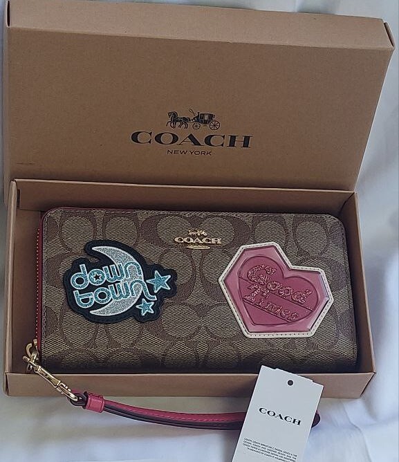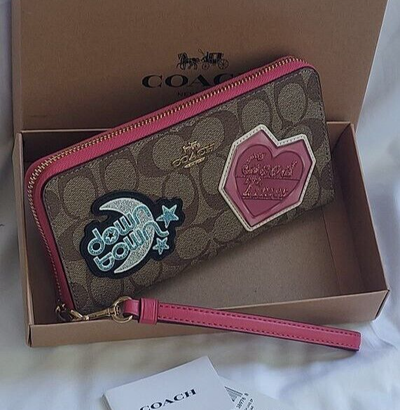 NWT Coach C6995 giftable Signature Disco Patch Long Zip Around Wristlet Wallet Color: IM/Khaki Multi Details: Signature Canvas and Smooth leather Twelve credit card slots Full-length bill compartments Inside zip coin pocket Zip-around closure Detachable wrist strap 7 1/2" (L) x 4" (H) x 1" (W) 👉Please review all photos, dimensions and descriptions thoroughly before your purchase.👈 Thank you! Please feel free to contact me if you have any question about this product before your purchase! I respond very soon. *Please note that the color in pictures might differ slightly due to lighting, flash and screen resolution.