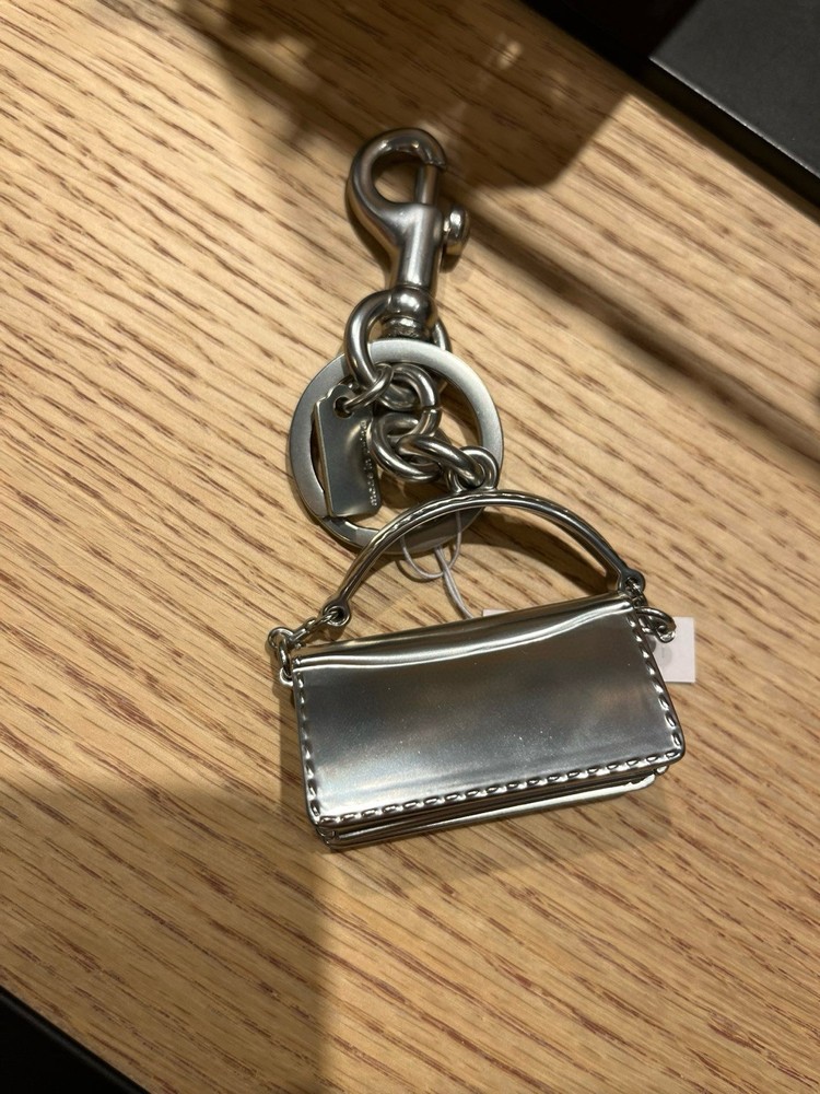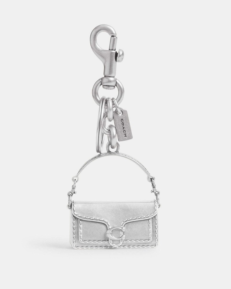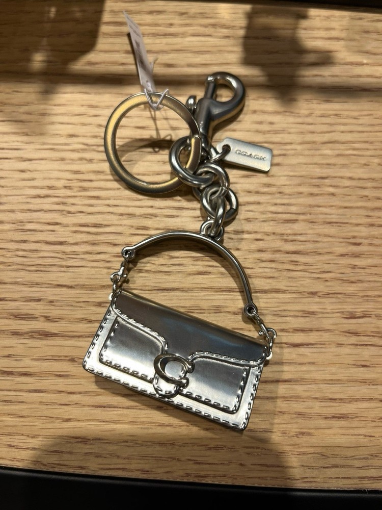 Country/Region of Manufacture: China Size: Total Length: 5”L Type: Key Chain Year Manufactured: 2020-2029 Modified Item: No UPC: Does not apply Brand: Coach Color: Silver Accents: ICONIC TABBY BAG Features: Attached Split Key Ring & Dogleash Clip Handmade: No Character: ICONIC TABBY BAG Item Length: Total Length: 5”L/ Tabby Bag: 2”H x 2”L x0.6”D gtin13: Does not apply Vintage: No Character Family: Charmed Department: Unisex Theme: ICONIC TABBY BAG Personalize: No Pattern: Solid Material: Metal, Silver