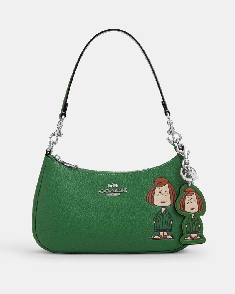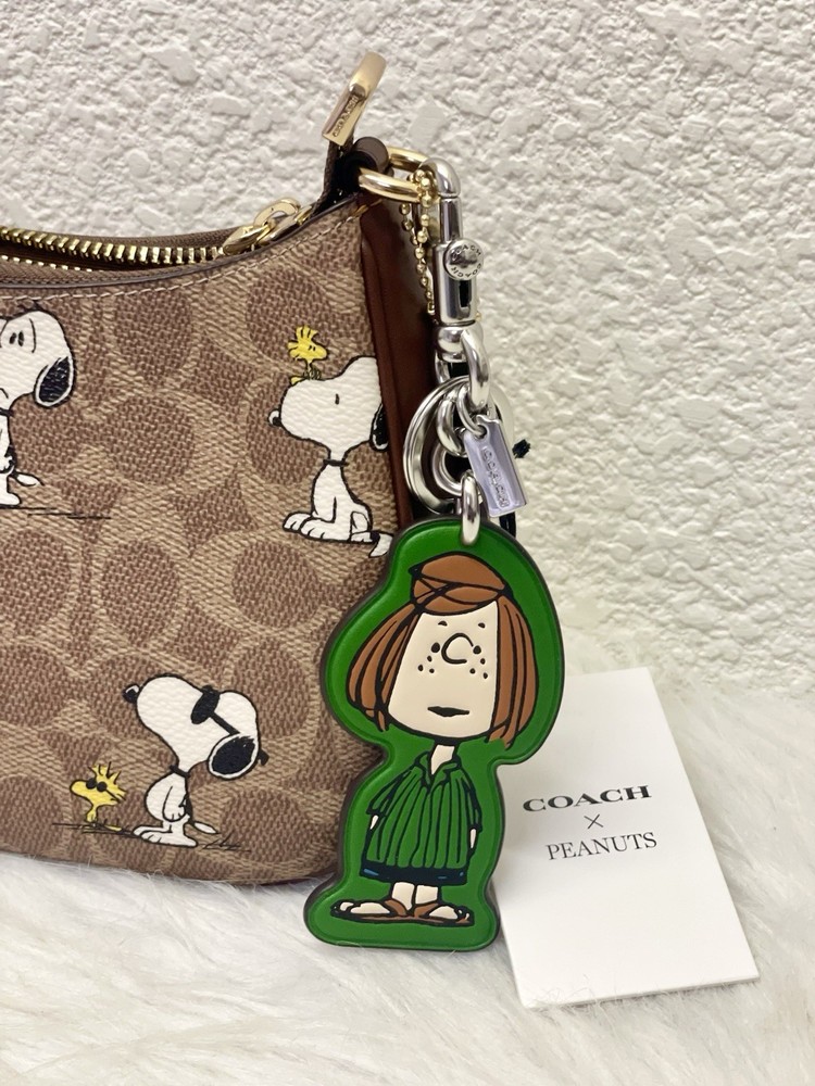 Coach X Peanuts Peppermint Patty Bag Charm CBG57 100% Authentic Product Details Style Number: CBG57 Measurements: Length: 2.0" - Height: 3.5" Materials: Smooth leather Features: Attached split key ring and dogleash clip