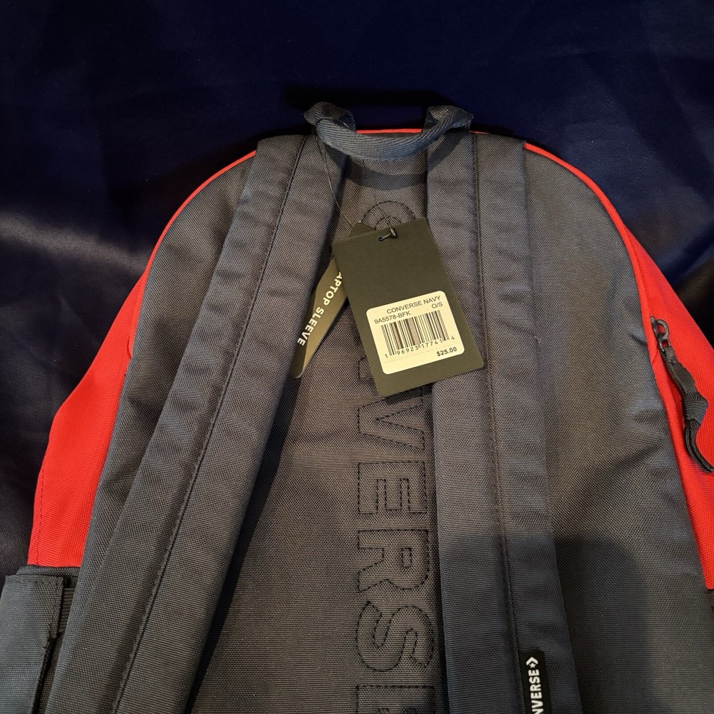 The New NWT Converse Red & Blue Varsity Backpack is a medium-sized backpack designed for Unisex Adults. It features a multicolor exterior with a padded laptop pocket, making it ideal for school or everyday use. The backpack is made of polyester material and has a width of 17 inches, providing enough space for carrying essentials while on the go. Perfect for those who value both style and functionality, this Converse backpack is a trendy and practical accessory for anyone in need of a reliable bag for their daily activities.