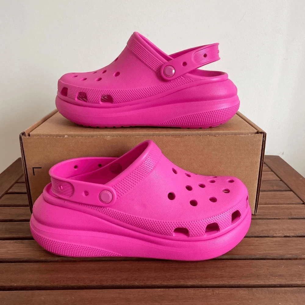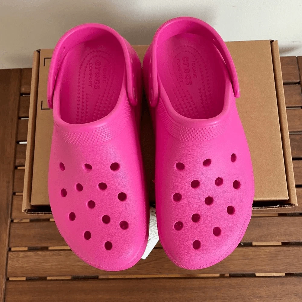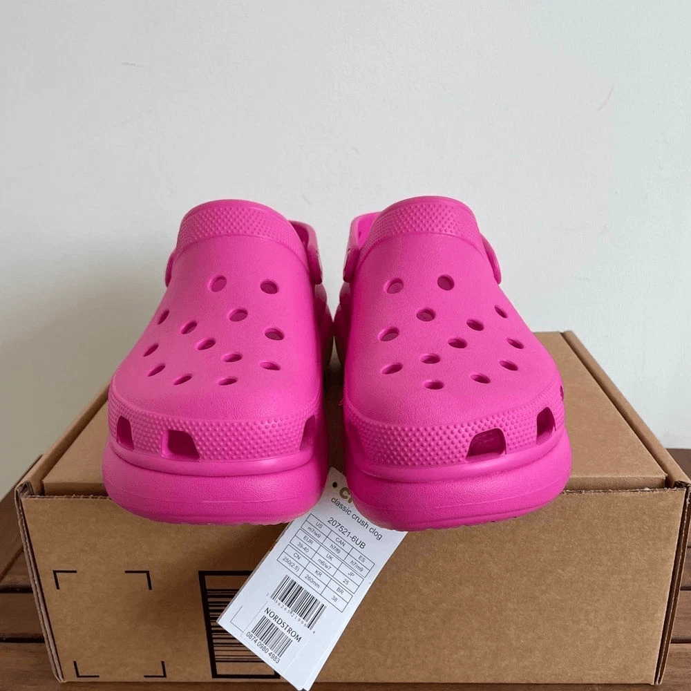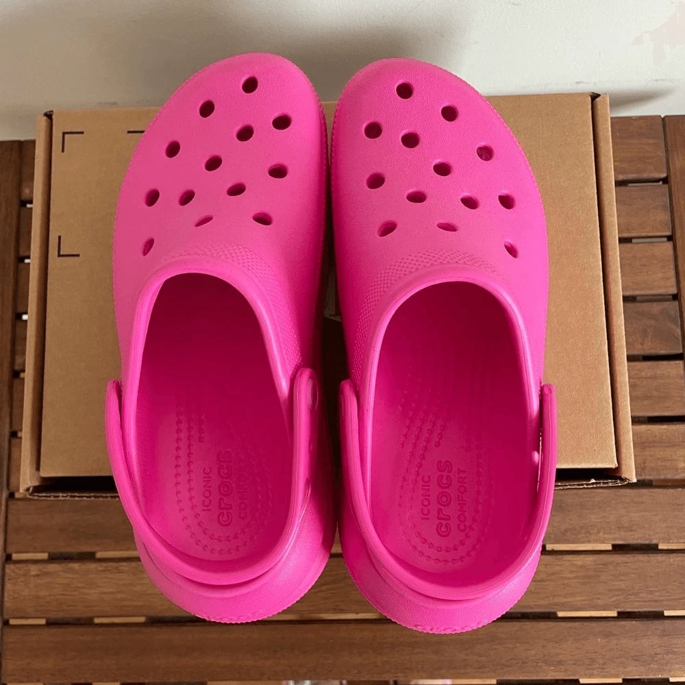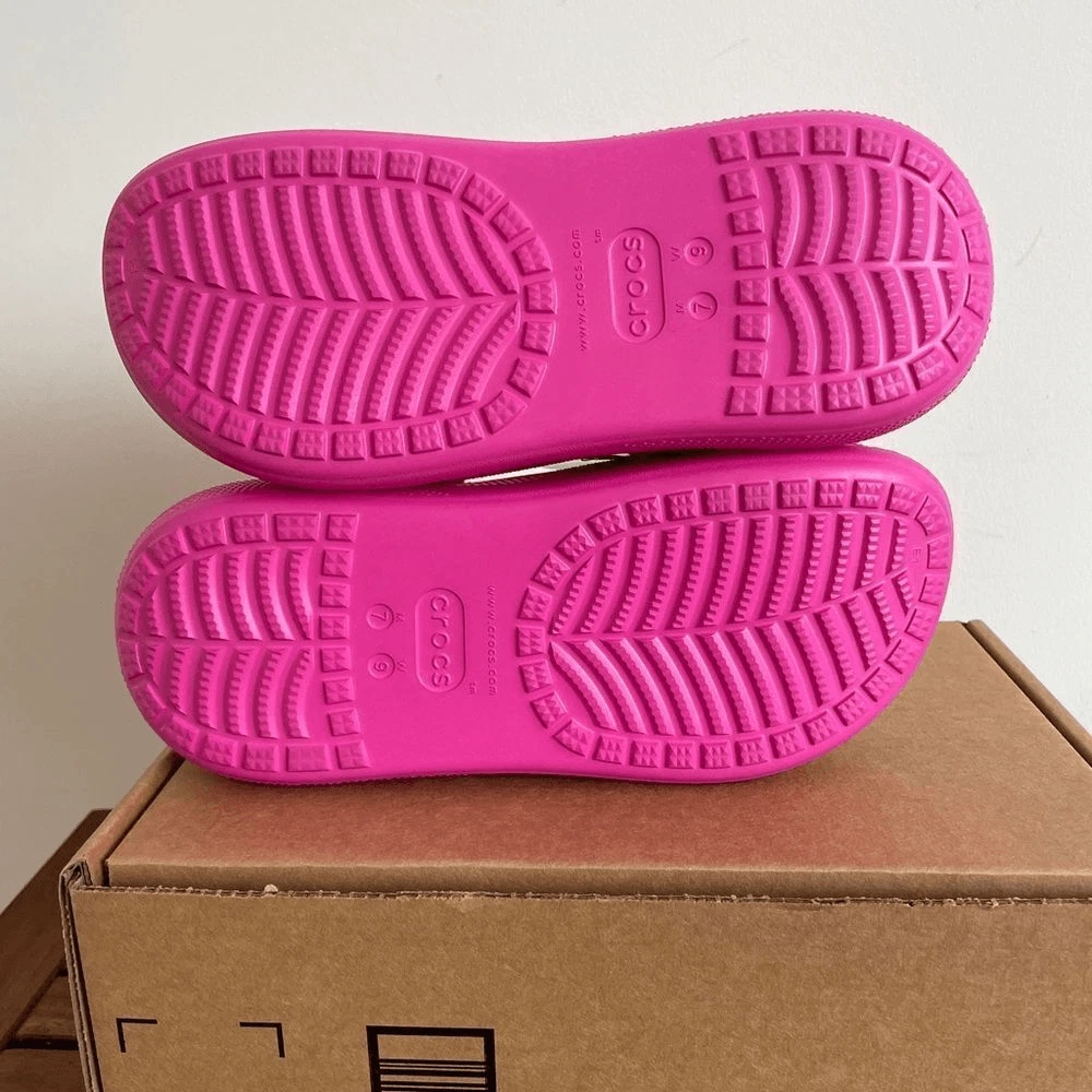 Brand new Crocs Crush Clog Size: Women 9 Men 7 Color: Juice This color is sold out online! ************ Crush Clog Details: Bold styling and added height Unique 2-inch / 5.2cm height, measured from floor to heel rest Customizable with Jibbitz™ charms Iconic Crocs Comfort™: Lightweight. Flexible. 360-degree comfort.