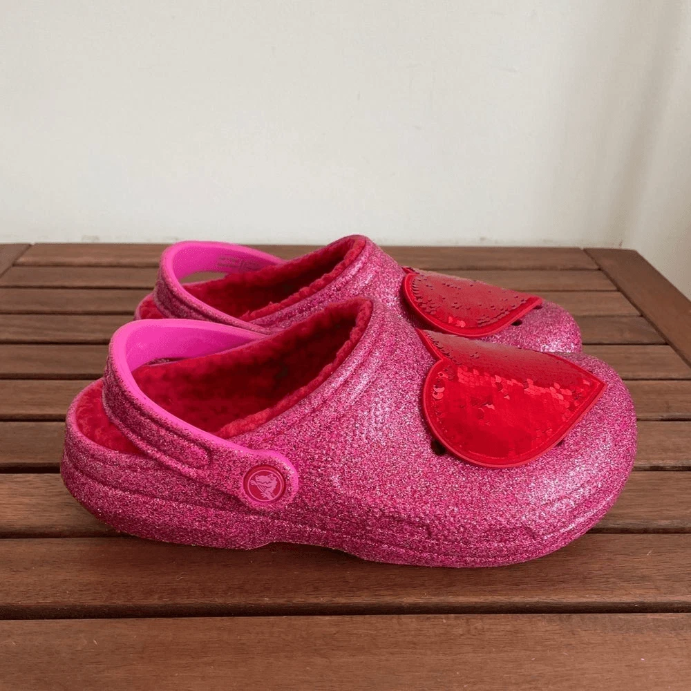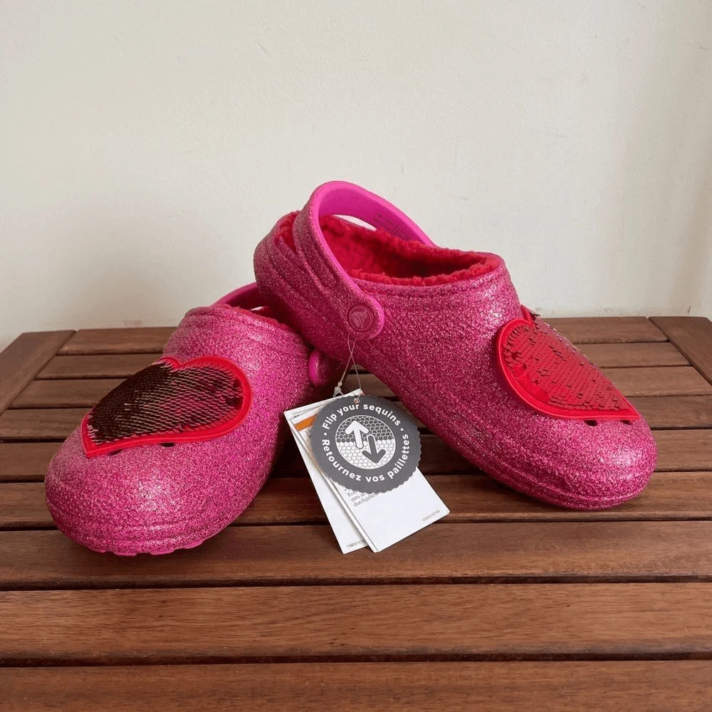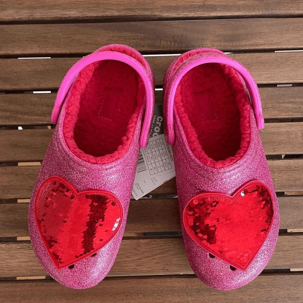 Brand new Crocs Classic Lined Valentine’s Day 2023 Clog Size: Women Size 8 Men Size 6 Style code: 208385-6EN Color: Pepper This model is sold out online! Product details: Glitter treatment Warm, fuzzy red liner Removable sequin heart patch Incredibly light and easy to wear Pivoting heel straps for a more secure fit Great indoors or out Customizable with Jibbitz™ charms Dual Crocs Comfort™: Blissfully supportive. Soft. Cradling comfort. *********************************************** Please take a close look of all the pics and video. You will get the exact same pair of shoes. All sales are final, thank you