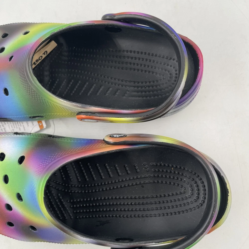 NWT Crocs Unisex Classic Solarized Clog Tie Dye Comfort Shoe Size Men 9 Women 11. BRAND NEW WITH TAGS Men’s Size 9 Women’s Size 11 Crocs women’s Classic Solarized tie dye clogs shoes. Please see photos for details of shoes •Lightweight Croslite foam construction •Easy slip on design with pivoting heel strap •Classic round toe with roomy fit •Molded footbed with Iconic Crocs Comfort •Durable and non-marking outsole •Customize with Jibbitz charms for a personalized look •Crocs logo Brand new. No original box Carefully packaged and box shipped same/next business day Please feel free to ask questions All items come from a smoke-free/pet friendly environment Please make sure to follow me. I list new inventory daily SH2900/3042PE-Q02