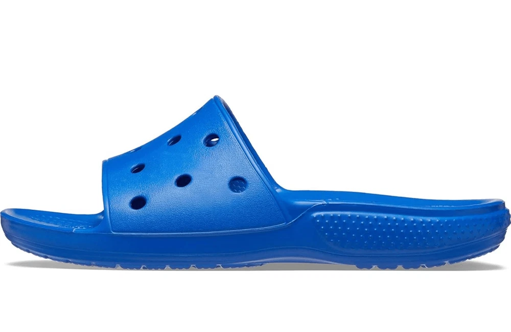 The product is a pair of Crocs Unisex-Adult Blue Classic Slide Sandals size M5/W7. These casual slip-on sandals feature a classic Crocs design with a blue exterior made of Croslite material. They are suitable for men and women in size 5 for men and size 7 for women. The sandals offer comfort and style for everyday wear, making them versatile for various casual occasions. • Jibbitz in the picture INCLUDED • Please review the size and pictures closely before purchasing. • NO RETURNS Product color may vary slightly due to photographic lighting sources or your monitor settings! ***Item: S4 All items are loaded with clear, detailed pictures, pre-checked, firmly well packed, bagged or covered with foam/bubble wrap, and sealed with extra taping. Images and recorded support items with a video before packaging and after for your security protection and mine! Tags- absorbing, adjustable, accent, accessories, aesthetic, air, airy puffed, ankle, ankle wrap, artificial, authentic, autumn, back zipper, basket, bean, birthday, boho, bohemian, bold, booties, boots, now, boy, buckle, butterfly, buttery-soft, cage, canvas, casual, certified, chain, chain-tread, character, characterized, cheetah, chic, Christmas, chunky, cinderella, classic, classy, clogs, closed-toe, closure, cocktails, collection, combat, comfy, compliment, costume, country, cowboy, cowgirl, cozy, crafted, crazy, criss-cross, crochet, crocodile, crocs, Croslite foam, custom, customizable, daily wear, date night, decor, design, designer, dinner, duck, durable, earth, eclectic, edgy, elegance, elegant, embellishments, EVA, evening, cozy, event, extraordinary, eye-catching, fabric, fall, fashion, faux fur, felt, feminine, flat-heel, flats, fleece, foam, fur, fuzzy, genuine leather, genuine suede, gift, girl, girly, glam, glitter, going out, go-go boots, gold-tone, golf gothic, grippers, grain, grunge, handles, hawt, hearts, heels, high, high quality, high-tops, hiking, hippie, holiday, hot, ice, indoors, infused, insulated, isotoner, Jibbitz, khaki, kids, knee-high, lace, lace-up, leather, light-up, lightweight, limited edition, loafers, luxe, luxurious, luxury, maine-made, man-made, manufactured, mary Jane, mesh, Mexican, mid-calf, modern, moto, motorcycle, mules must-have, night, night out, nubuck leather, oasis, office, ombre, ortholite, outdoors, outsole, padded, padded collar, party, patched, patten leather, pattern, parties, peep toe, pewter, PINK, pivoting heel strap, platform, pleated, pleather, polka dots, popular, premium, present, printed, PU leather, pumps, punk, PVC, rain, rainbow, rare rave, retro, round toe, rubber, ruffle, running, sandals, secure footing, sex appeal, sexy, sheer, shiny, shock-cushion, shoes, simple, skate, skateboarder, skimmer, slippers, slipper socks, slip-off, slip-on, slipper booties, slipper, snake skin, sneakers, socks, snow, socks, solid hue, sport, side buckle, side strap, side zip, Signature's, silhouette, slide, steel toe, steel shank, stitching, stilettos, strap, strappy, streetwear, stripe, stunning, stylish, suede, summer, superhero, sweater, synthetic, tennis, texture, thermolite, tie, tiger, toddler, traction, traditional, translucent, trendy, trending, triple needle, tropical, tumbled, two pull handles, the two-toned, unique, unisex, upper-class, upper layer, urban style, vast, vegan, velvet, versatile, vibes, vibrant, vintage, walking, warm, washable, waterproof, water repellent, water resistance, wedding, wedge, western, wide, winter, women, woman, work, wrap, woven, Y2K, yoga, zipper, zipper back