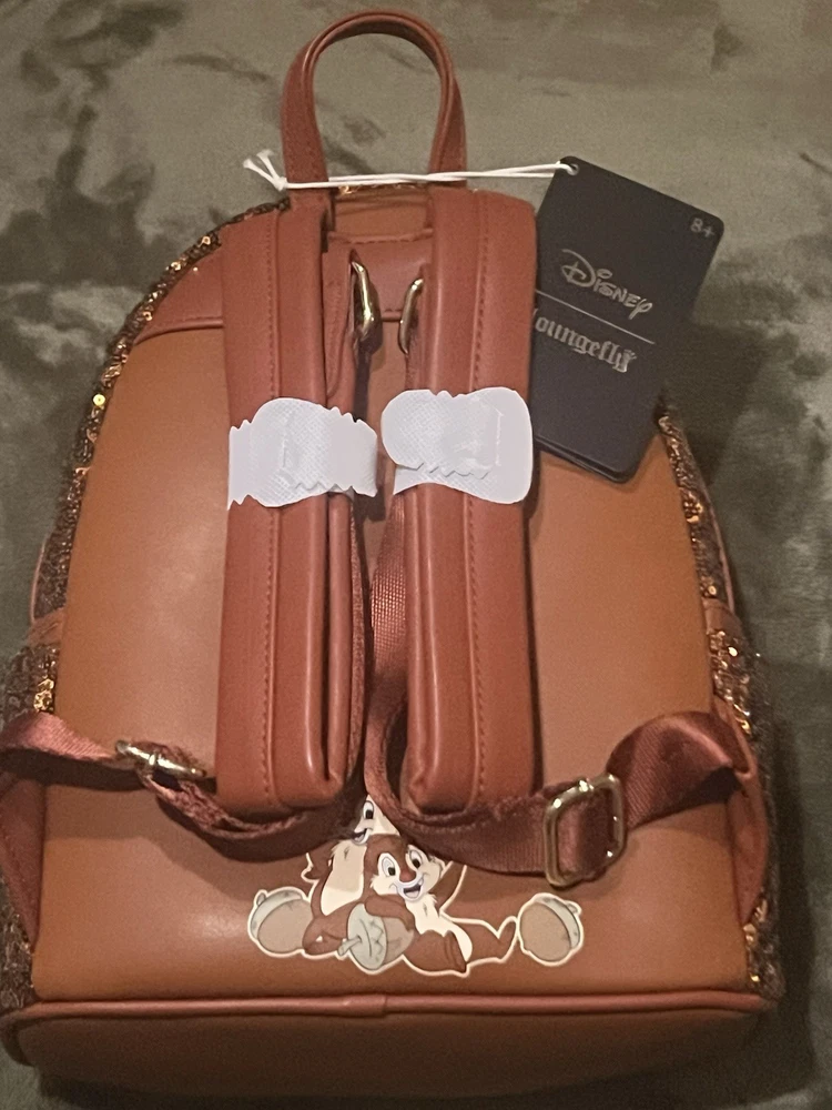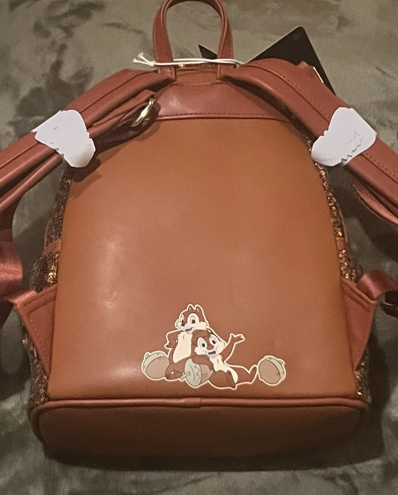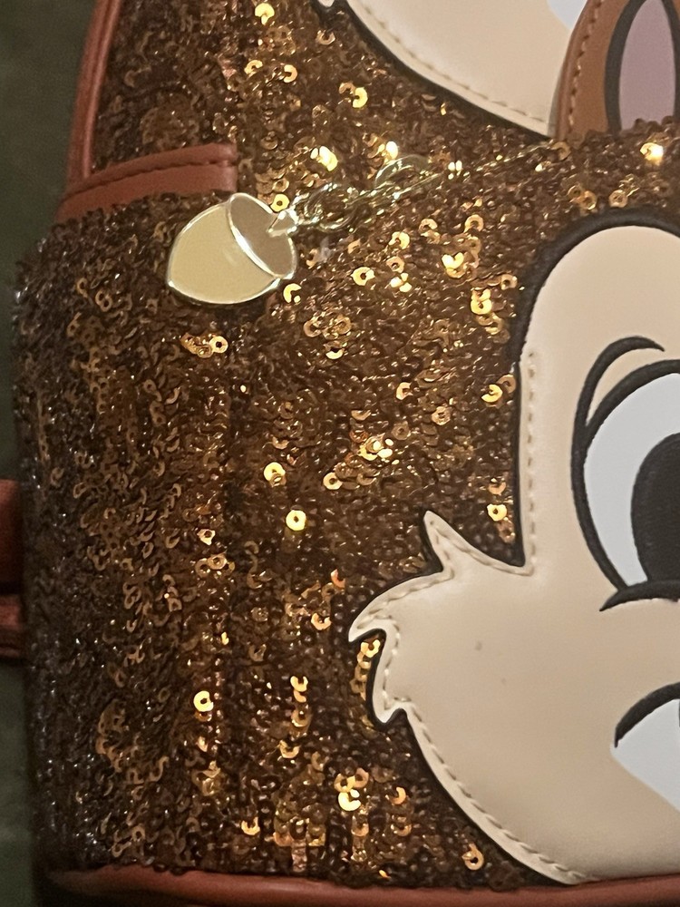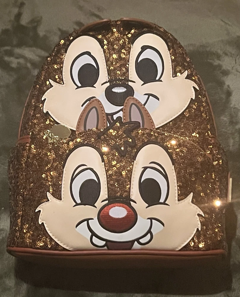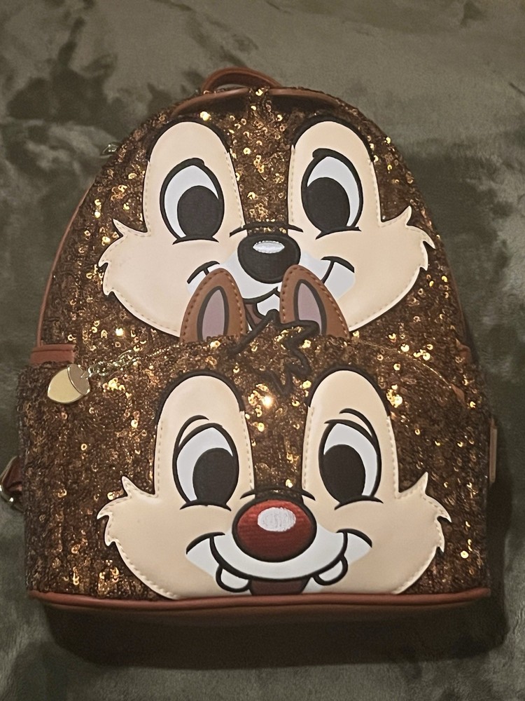 The NWT Disney Loungefly Chip N Dale Sequin Mini Backpack is a rare and highly sought-after collectible item that is no longer in production. Featuring the beloved characters of Chip & Dale from the Disney franchise, this mini backpack by Loungefly is a must-have for any Disney fan. With its unique sequin design and compact size, this backpack is the perfect accessory for adding a touch of Disney magic to any outfit.
