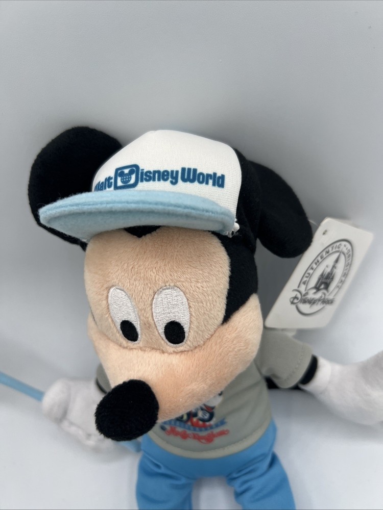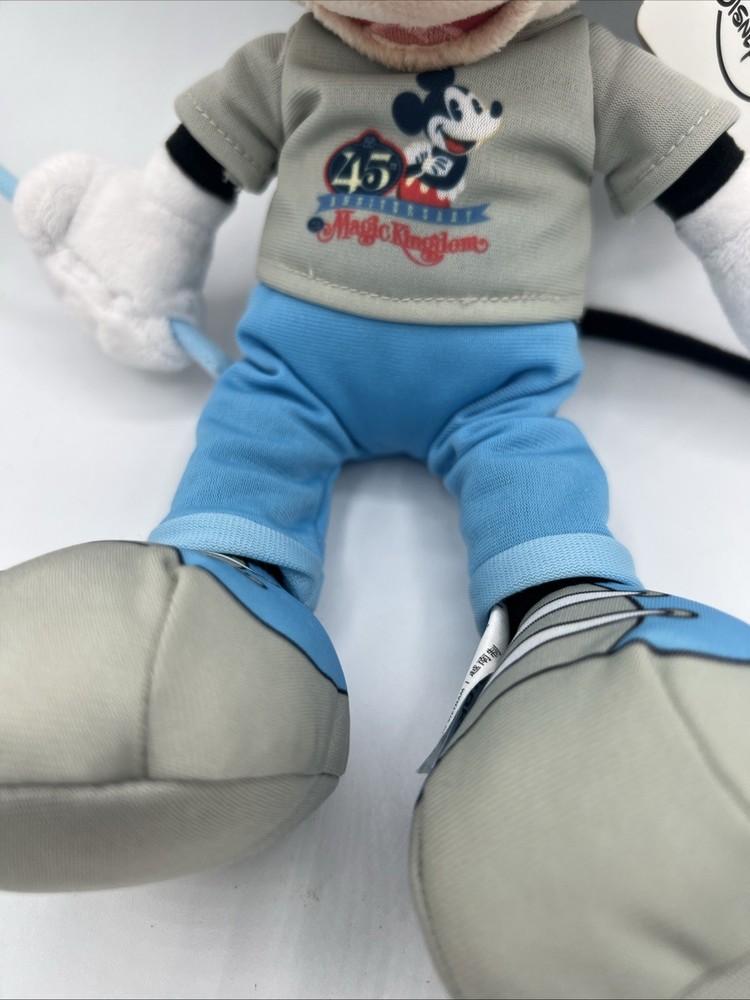 The product is a brand new Mickey Mouse plush toy celebrating the 45th anniversary of Walt Disney World. This official Disney collectible features the iconic character Mickey Mouse, making it a must-have for any Disney fan or collector. With its Magic Kingdom flag design, this plush toy is a special and nostalgic reminder of the beloved theme park's history and significance in the Disney franchise.