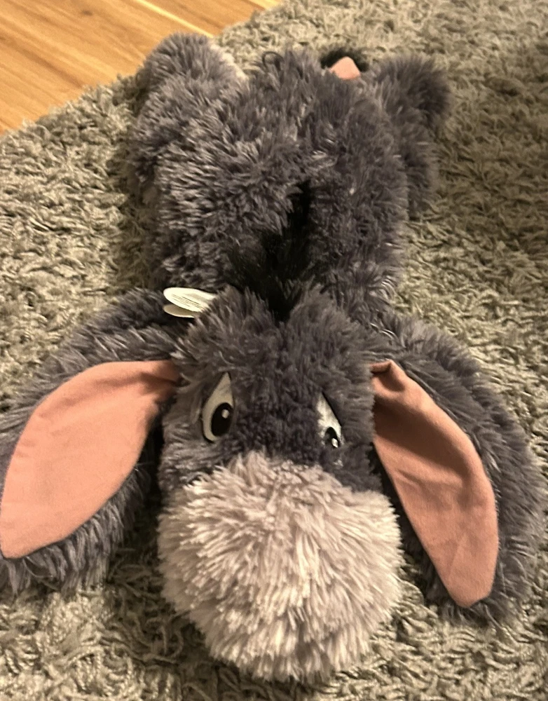 Disney World Eeyore Plush Storage Pillow, fill Eeyore with other stuffed animals, a blanket or sleepover clothes and snuggle up. SUPER SOFT! Tail is attached by a string and has velcro to reattach it to Eeyores body!!