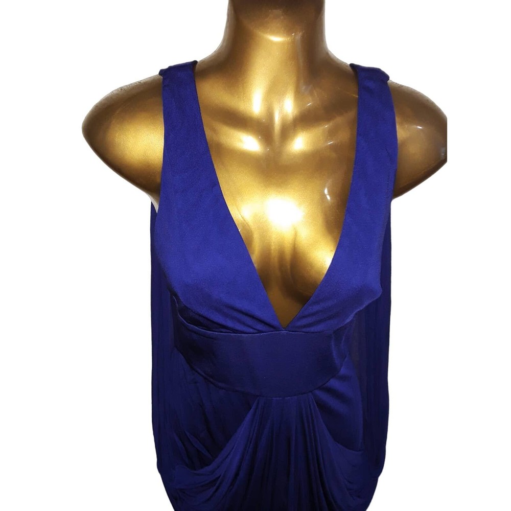 Gorgeous, Sexy, Early 2000s NWT Versace Royal Blue Draped Panel Back Grecian Style Cocktail Dress. Vibrant Royal Blue Color That Can Be Worn Any Time of The Year. Flattering Drapes and Gathers Throughout Hidden Zipper at Side with Hook-and-Eye Closure MSRP: $2,175 Size 42 (Italian) – Approx 8/10 US. Please Refer to Measurements Prior to Purchase Approximate Measurements Laid Flat Across Front: Chest - Pit to Pit: 18.5” Waist: 15.5” Hips: 19.5” Length: 38” from Top Back Shoulder Seam to Hemline Material: Rayon Jersey Blend (Super Soft and Luxurious Stretchy Blend of Fabric) NOTE: Measurements May Vary as This Dress is Made of Stretchy Material. Measurements were Taken When Item Was Laid Flat, Not Stretched. FAST SHIPPING!!