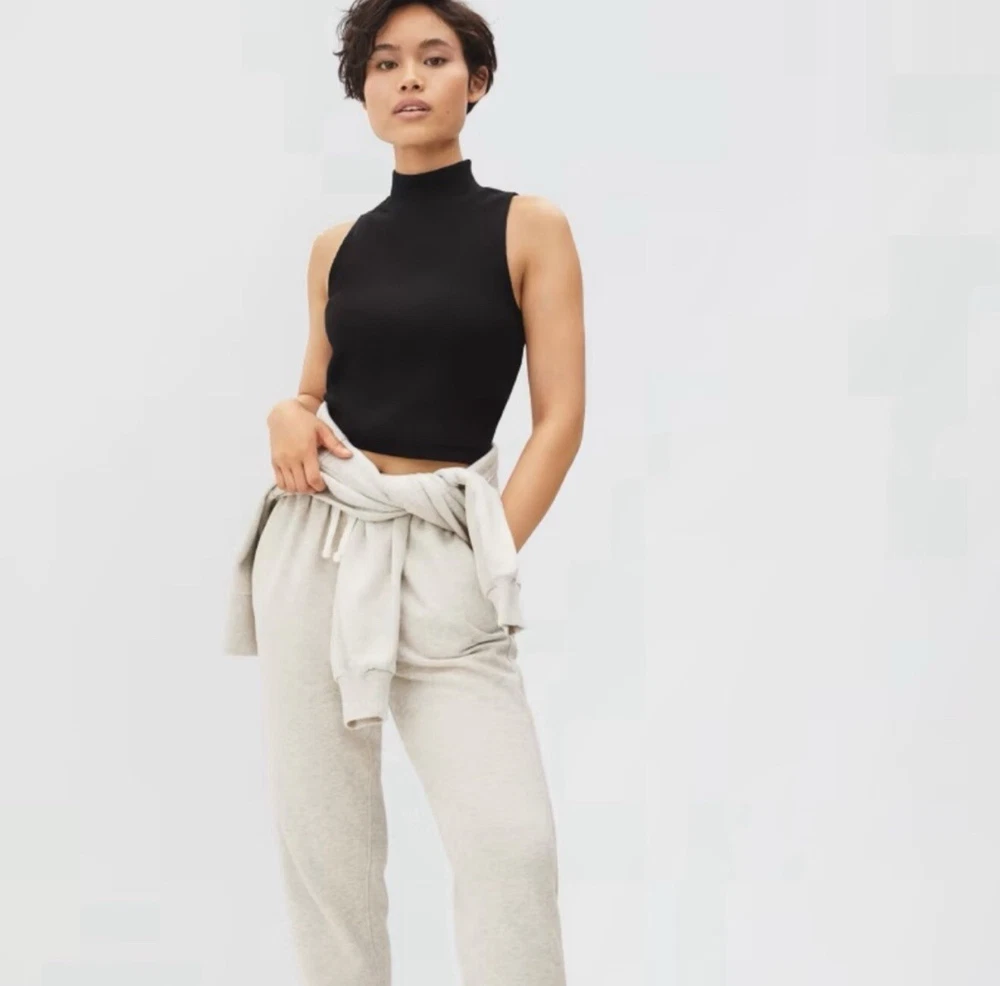 Not your average tank. The Ribbed Mockneck Tank features an elevated neckline, classic shoulder-width sleeves, and a snug, cropped fit. Plus, it’s made of textured fine-rib cotton with a touch of stretch, so it’s ultra-breathable and hugs you in all the right places. Brand: Everlane Size: Small Condition: NWT! but with a few deodorant marks (photographs) will come out through the wash. Fabric: Organic Cotton Dimensions Pit to pit ~15" Full length 17: Tags: minimalist, classic, mockneck, turtleneck, 90s, Y2K, contemporary, ribbed, aritzia, revolve, COS, cropped, elevated basic, organic cotton, cotton