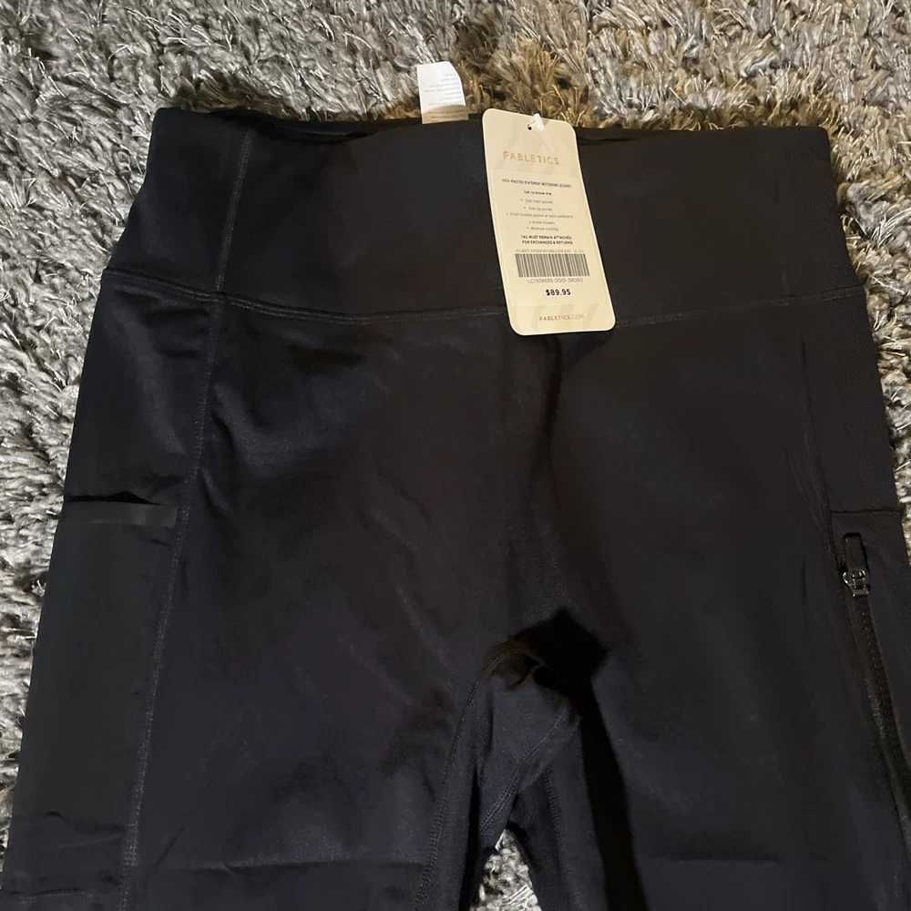 Elevate your workout wardrobe with these high-waisted Fabletics leggings, designed to offer both style and functionality. Featuring a versatile black color, these leggings are crafted for women who appreciate a blend of comfort and support. The full-length cut and compression fabric provide a flattering fit that's ideal for a variety of activities, from running to yoga. The leggings boast convenient features such as a zip pocket for securing small items and breathable, wrinkle-resistant fabric that keeps you looking polished throughout your day. With a comfortable stretch and an elastic waist that contours, these leggings are perfect for any casual or activewear occasion, ensuring you're equipped for whatever your day has in store.