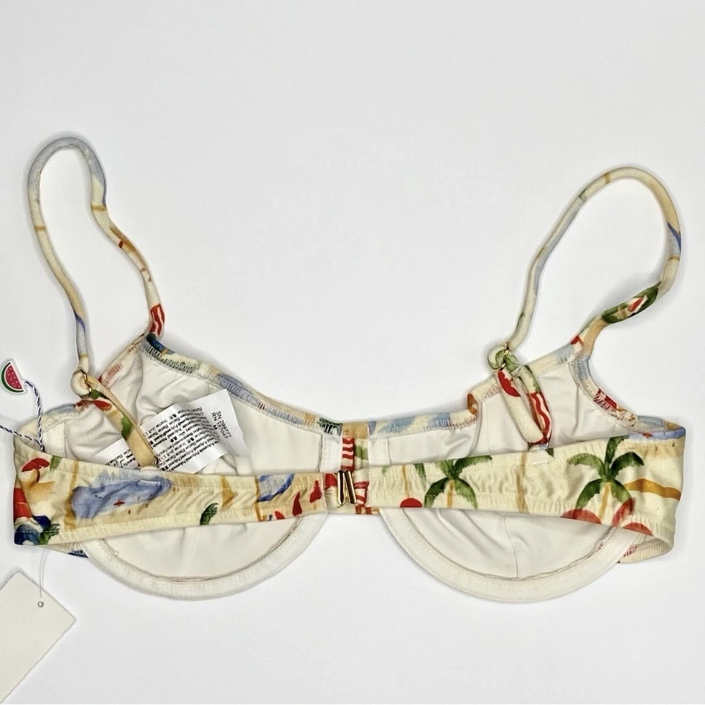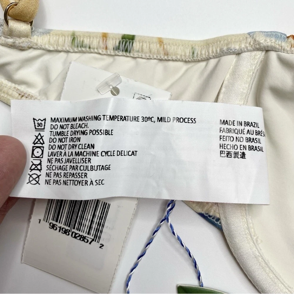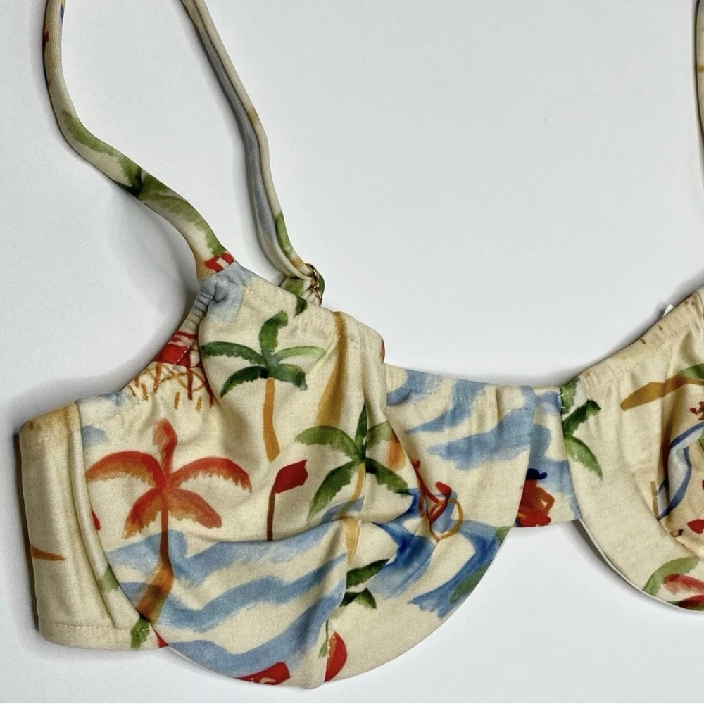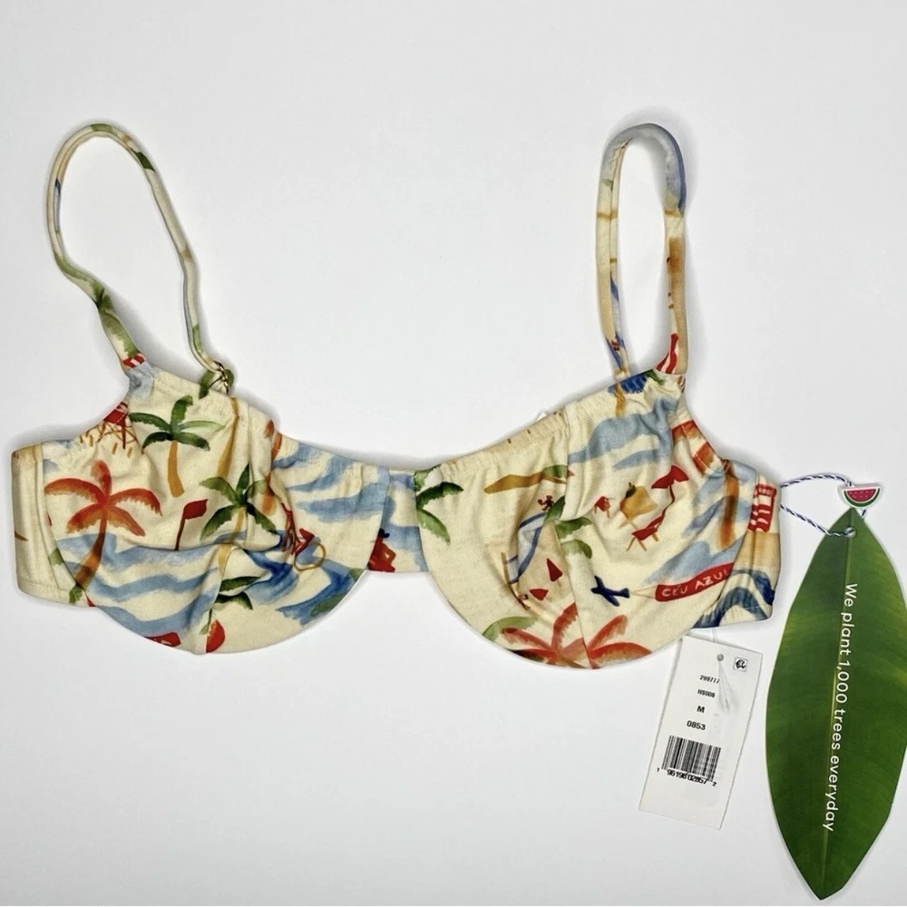 Embrace the vacay vibes in this flirty bikini top with supportive underwire. Allover print. Adjustable straps. Underwire. Back hook closure. Gold-tone hardware. Lined. *This listing is for the top only!* Color: Copacabana Size Medium = 8 - 10 Measures Flat Approximately: 13.5" Across Bottom Band 84% Polyamide / 16% Elastane Lining: 87% Polyamide / 13% Elastane Hand Wash **BRAND NEW! WITH TAGS!** **SORRY, WE DO NOT ACCEPT RETURNS FOR SWIMWEAR OR UNDERGARMENTS!**
