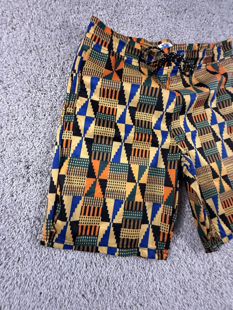 These NWT Fresh Prince Of Bel-Air urban wear basketball shorts in size large for men are perfect for showing off your love for the iconic TV show while playing a game of basketball. The multicolor graphic print and drawstring closure add a stylish touch to the athletic fit shorts made from a blend of polyester and spandex. Machine washable for easy care, these shorts are ideal for active occasions and are sure to make a statement on the court. 5244