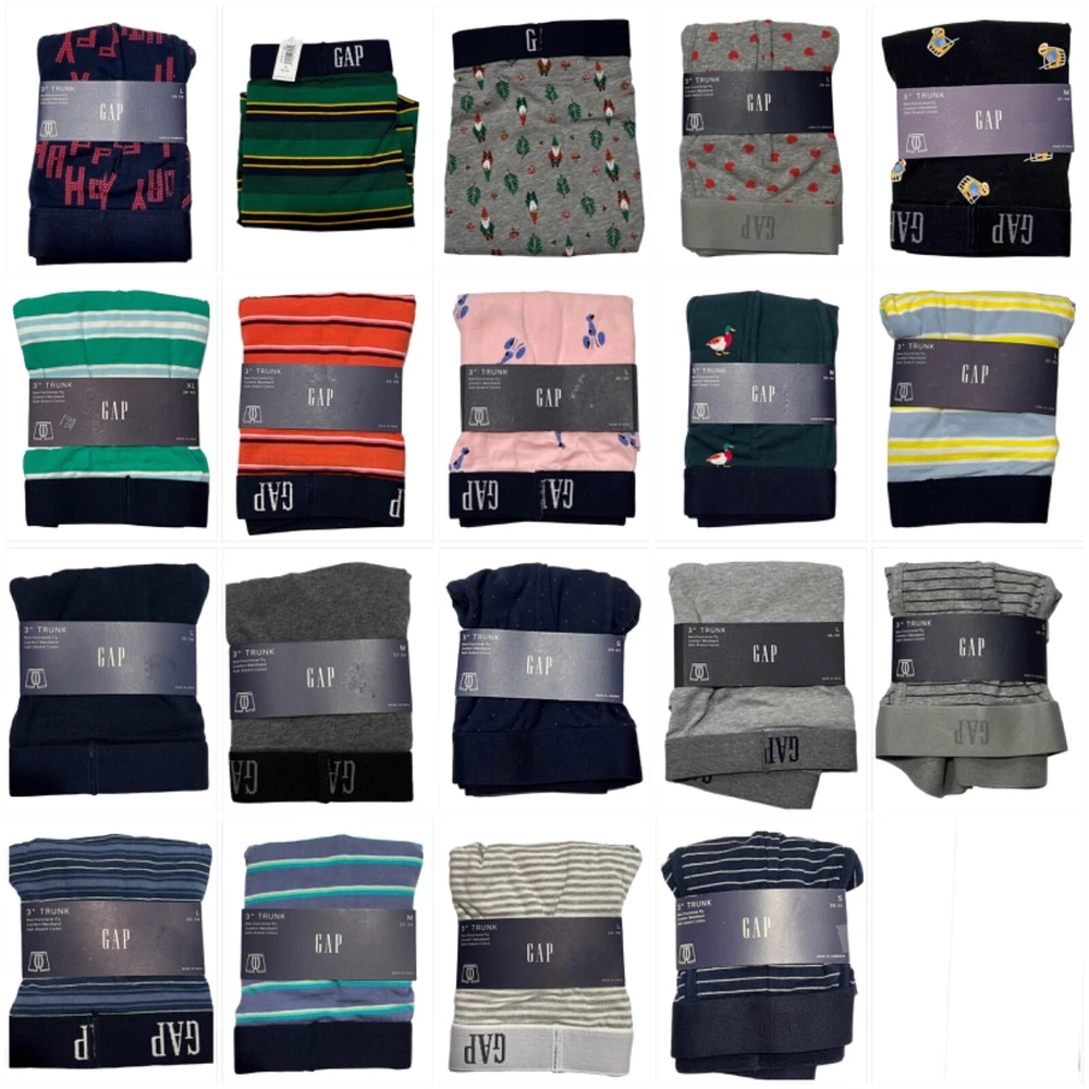 New trunk underwear available to choose from. Jersey knit material. Some styles do not have the cardboard packaging, but they are in Gap plastic bags. I believe this is because they were online items. Price is for one item. All prices are firm. No consideration will be given to offers.