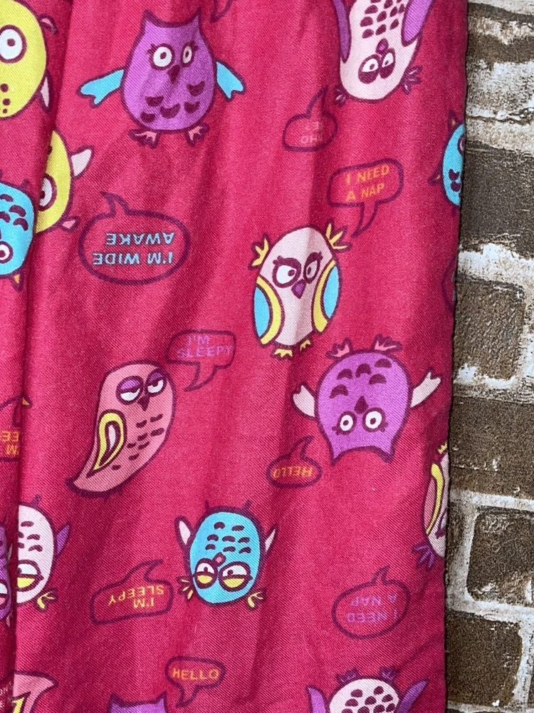 NEW WITH TAGS - GAPKIDS - OWL PAJAMA BOTTOMS 6 ELASTIC WAIST TIE FRONT DARK PINK WITH OWLS ALLOVER THOUGHT BUBBLES NEXT TO OWLS READ, "WHO ME?" , "I NEED A NAP", " HI!", "HELLO", "I DON'T LIKE NAPS", AND "IM WIDE AWAKE" FLAME RESISTANT PLEASE CHECK OUT MY STORE FOR MANY MORE THINGS FOR SALE!!!! BIN # 30