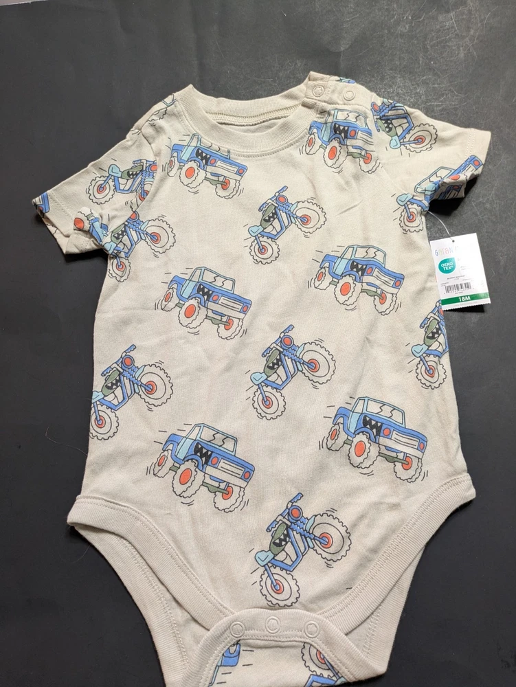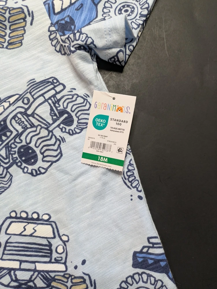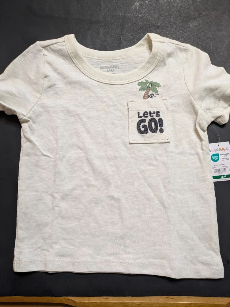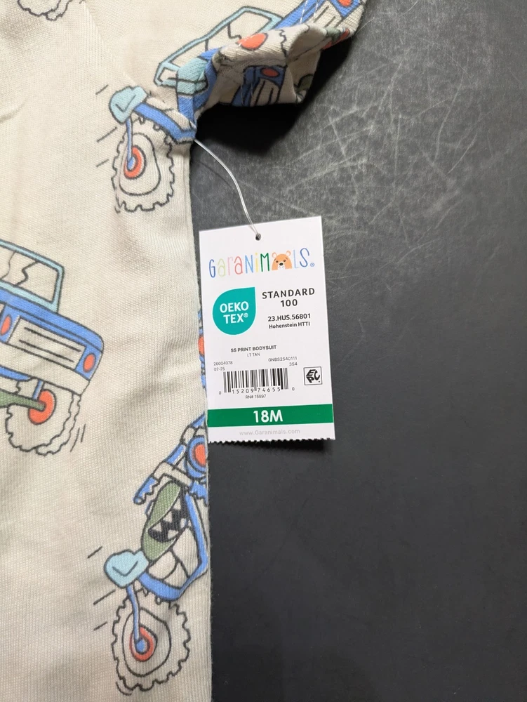 This 18-month baby boy bundle features a fun mix of vehicles and outdoor themes in a classic blue, tan, and ivory palette. All items are New With Tags (NWT) and carry the OEKO-TEX Standard 100 certification. What’s Included: This bundle is perfect for building a versatile toddler wardrobe with comfortable tops and coordinating bottoms: 1 SS Tee Print (LT Blue): Fun all-over monster truck and motorcycle graphic print. 1 SS Print Bodysuit (LT Tan): Features a repeating pattern of trucks and bikes. 1 SS Pocket Tee Graphic (Ivory): Features a "Let's GO!" pocket graphic with a small palm tree detail. 1 TB FT Jogger (Trailblazer Brown): Soft and comfortable joggers in a warm tan tone. 1 FT Jeggings (Apple Cinnamon): Stylish stretch pants in a coordinating cinnamon shade. 1 TB FT Jogger (Dazzling Blue): Vibrant blue joggers with a comfortable elastic waistband. Product Details: Brand: Garanimals Size: 18 Months Condition: New With Tags (NWT) Features: OEKO-TEX Standard 100 Certified Country of Origin: 2 items made in Bangladesh 2 items made in Vietnam 1 item made in Sri Lanka 1 item made in El Salvador Shipping & Promotions: Free Shipping Offer: Take advantage of my shop's current promotion—buy 2 or more Garanimals bundles and your shipping is FREE! Fast Handling: As a professional reseller, I ensure items are packed carefully and shipped quickly. Note: Please refer to the photos for close-up details of the fabric textures, graphics, and specific tag information.
