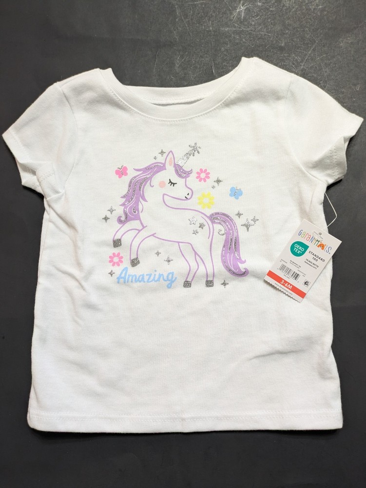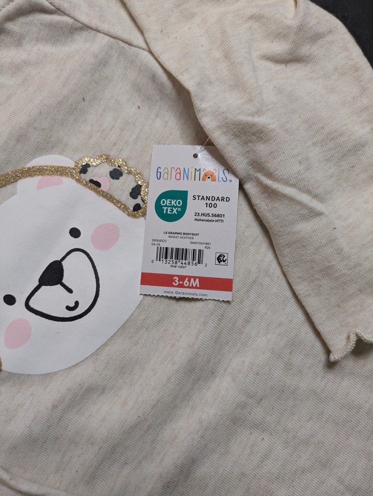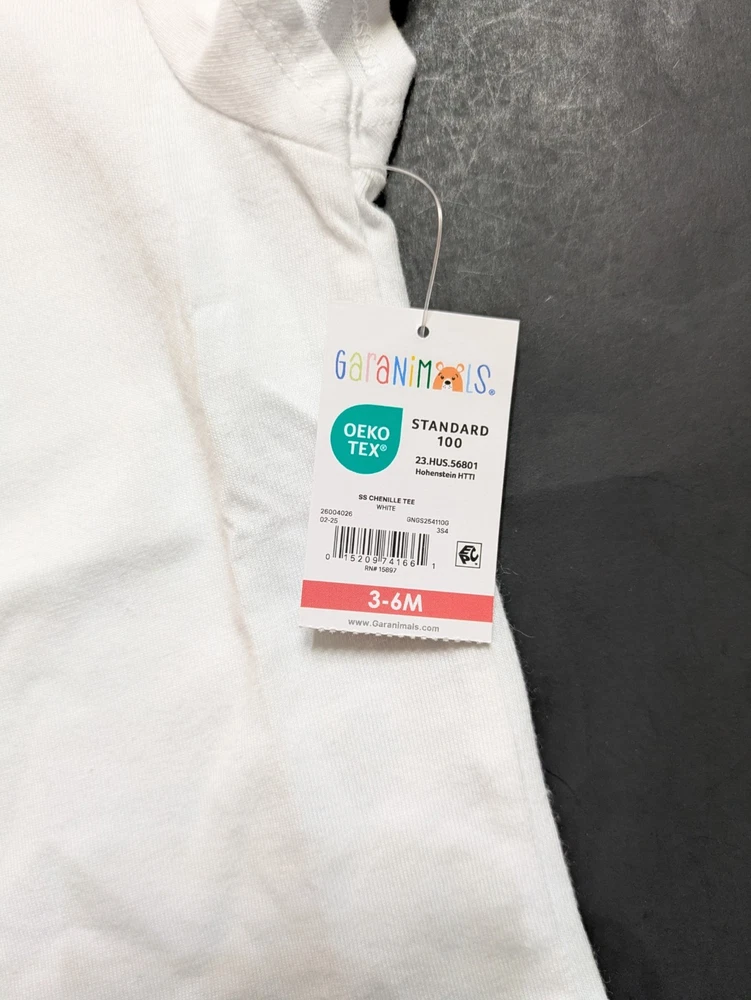 Add some sparkle to a little one's wardrobe with another carefully curated set from Plumlee and Me! This 6-piece baby girl bundle features a mix of delightful textures, shimmering accents, and sweet graphics. All items are New With Tags (NWT) and OEKO-TEX Standard 100 certified. What’s Included: This 3-6 month bundle is designed for comfort and style with a mix of tops and coordinating leggings: 1 SS Chenille Tee (White): Features a soft, textured butterfly graphic with pink and green accents. 1 SS Chenille Tee (Yellow): Features a cheerful, fuzzy orange flower graphic. 1 SS Graphic Tee (White): Features a majestic "Amazing" unicorn graphic with glittery silver and purple details. 1 LS Graphic Bodysuit (Wheat Heather): A soft, neutral long-sleeve bodysuit featuring a sweet bear wearing a leopard-print headband with gold glitter. 1 Foil Legging (Gold Fog Foil): Eye-catching gold metallic leggings for a touch of glam. 1 Flutter WB Legging (Blue SD Heather): Comfortable navy blue heather leggings featuring a cute ruffle "flutter" waistband. Product Details: Brand: Garanimals Size: 3-6 Months Condition: New With Tags (NWT) Country of Origin: 2 items made in Bangladesh 2 items made in India 1 item made in El Salvador 1 item made in Sri Lanka Shipping & Promotions: Special Bundle Offer: Don’t forget—if you buy 2 or more Garanimals bundles from my shop, you get FREE SHIPPING! Professional Service: Your order will be packed with care and shipped quickly. Note: Please refer to the photos for close-up details of the fabric textures, shimmer effects, and specific tag information.