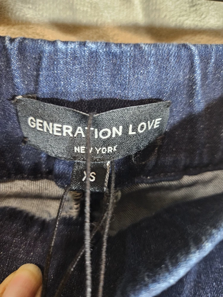 Size: XS Material: Cotton, Polyester, Spandex Season: Fall, Spring, Summer Rise: Mid (8.5-10.5 in) Department: Women Type: Leggings Model: H22537 Brand: Generation Love Accents: Zipper Pattern: Solid Features: Pockets Country/Region of Manufacture: China Style: Jegging Inseam: see pic Occasion: Casual, Party/Cocktail Waist Size: see pic Color: Blue UPC: Does not apply Theme: Love gtin13: Does not apply Garment Care: Machine Washable Fabric Wash: Raw Size Type: Regular
