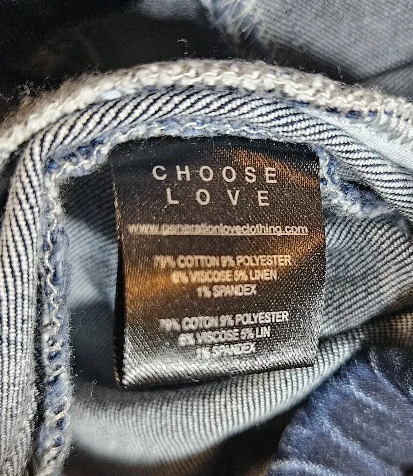 These Generation Love jeggings are perfect for any occasion, whether it's a party or a casual day out. The raw hem and zippered pockets add a unique touch to the solid blue color, which is made from a blend of polyester, spandex, and cotton. The mid-rise fit and machine washable garment care make them comfortable and easy to wear. The XS size and waist size, which can be seen in the picture, ensure a perfect fit for the 8.5-10.5 inch inseam. These jeggings are perfect for summer, fall, or spring and are made in China. The love theme adds a touch of romance to the jeggings, making them a great addition to any wardrobe.