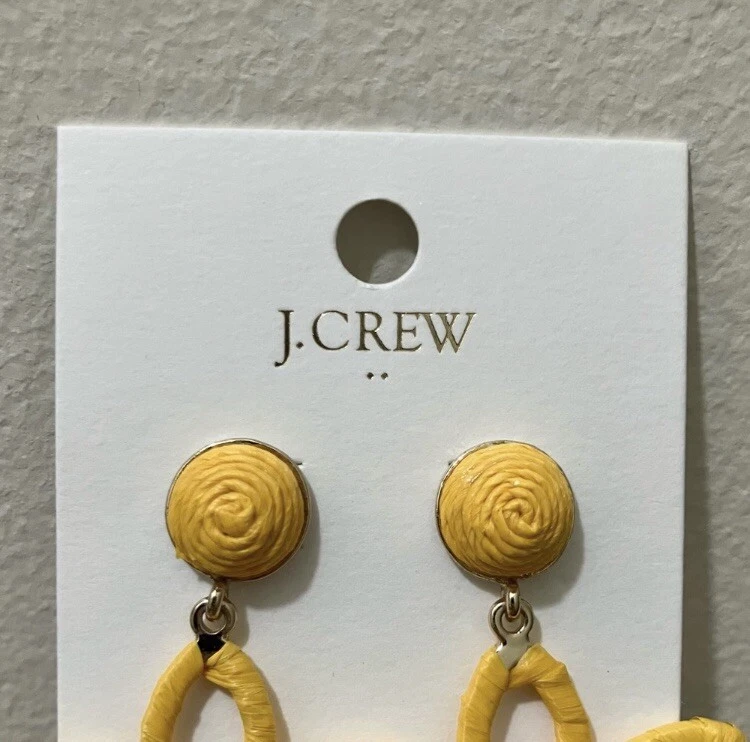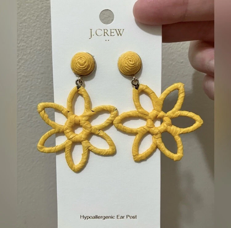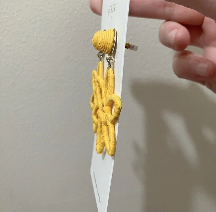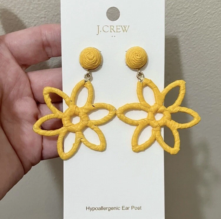 These NWT J. Crew (Factory) Wrapped Flower Statement Earrings are perfect for vacation or any event this spring or summer! They are drop earrings in a warm sunflower yellow color with gold plated accents and hypoallergenic posts. These floral, boho earrings are new with tags and one size (OS). -Item Details: Gold-plated recycled-zinc casting, gold-plated steel stamping, faux-raffia fabric, hypoallergenic titanium posts, disc clutches -Length: 2.5 Inches -Color: Sunflower -NWT *Note: There are a few thread imperfections where you can see glimpses of the metal underneath- mostly on the left earring (photo #5). Measurements are available upon request. Offers welcome! Please let me know if you have any questions! Items come from a smoke-free home and are packaged with care. Thank you for considering supporting my small business! Tags: Floral, Flower, Boho, Bohemian, Hippie, Beach, Beachy, Garden Party, Summer Wedding Guest, Whimsical, Preppy, Drop, Dangle, Spring, Resort, Resortwear, Yellow