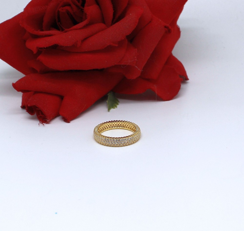 This is a fabulous sterling silver / vermeil eternity band with sparkling CZ stones. It is from JTV. It is stamped 925 YGI CN. It is new with out the original tag. The face is about 3/16th of an inch wide. Visit our store to find dozens of similar brand new rings! Please consider donating jewelry or scrap you no longer wear. Keep your bid will help homeless pets..... Whiskers Rescue Inc. Whiskers Rescue Inc. is a small non profit dedicated to the humane reduction of the feral and stray cat population though trap, neuter, return. We offer a free TNR voucher program to low income, NJ residents, to allow caretakers to spay/neuter the feral cats they feed. We provide free equipment rentals and training to anyone who wants to transition from feeding to becoming a caretaker. We rely heavily on ebay sales and jewelry donations to fund the program. We fund 500-600 spay/neuter surgeries per year preventing thousands of homeless kittens from being born on our streets. We would like to thank everyone here on ebay for all of your generous support.
