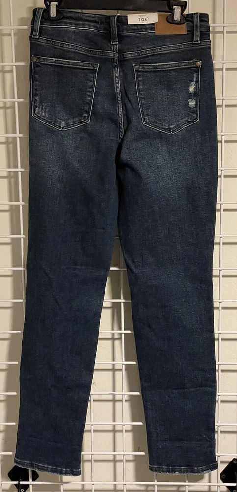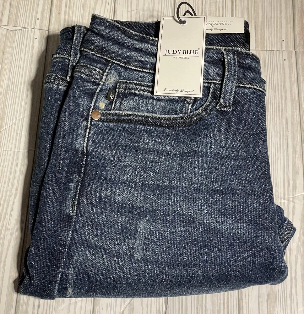 Get ready to rock the Judy Blue Boyfriend Fit with these stylish distressed jeans. Made from a blend of polyester, spandex, and cotton, these jeans are comfortable, stretchy, and perfect for any season. Featuring a 5-pocket design with a coin pocket, these jeans have plenty of storage space for your essentials. The mid-rise fit and slimming dark wash make these jeans a great choice for any occasion, from festivals to cowboy gatherings. With a button closure and Judy Blue logo accents, these jeans are both fashionable and functional. The 31-inch inseam and regular fit make them a great choice for women who want to look and feel amazing. Machine washable and made in China, these jeans are part of the Judy Blue Boyfriend Fit product line. Don't miss your chance to add these stylish jeans to your wardrobe today!