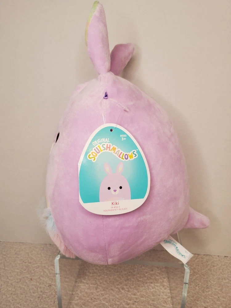Plush is in like new condition with tags. See pictures to verify condition and details. Introducing the adorable Kellytoy Squishmallow Kiki The Pink Kangaroo, a perfect addition to any Easter basket or stuffed animal collection. This 8 inch plush toy, made by Kellytoy, features a soft and squishy texture that kids and adults alike will love. With a cute pink color and charming bunny design, Kiki is sure to be a favorite companion for any child. This toy is recommended for ages 3 and up, and is a great choice for fans of Easter or stuffed animals. Whether you're looking for a gift for a special child in your life or just want to treat yourself to a cute new toy, Kiki is sure to bring a smile to your face.