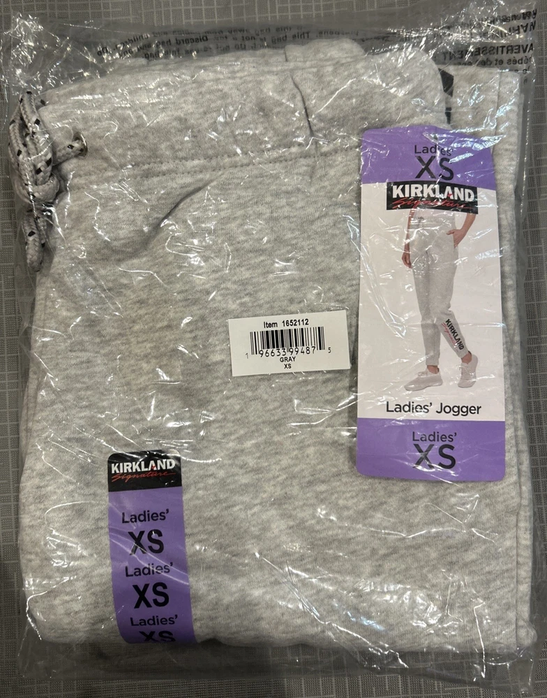 Kirkland Signature Ladies Women Logo Jogger Color: Gray NWT ( NEW WITH TAGS ) Features: • Kirkland Signature ™ • Colors: Gray • Relaxed fit • Side pockets • External drawstring • Kirkland Signature ™M logo on left leg • Made in China Content: • 66% Cotton 34% Polyester • Approximately 320 GSM • Heavyweight Sizing: • Women/Ladies Sizes: XS, S, M, L, XL, XXL • Size conversion: XS = 0-2 S = 4-6 M = 8-10 | L = 12-14 | XL = 16 | XXL = 18 • XS Inseam = 28.5" • S-XXL Inseam = 29" • Model is 5'9"wearing size Small • Model is 5'10 wearing size XXL • Size subject to availability Care Instructions: • Turn garment inside out • Machine wash cold with like colors • Only non-chlorine bleach when needed • Tumble dry low • Cool iron if needed • Do not iron on decoration • Do not dry-clean