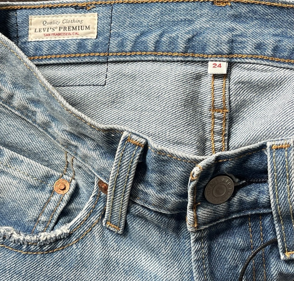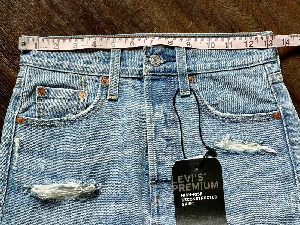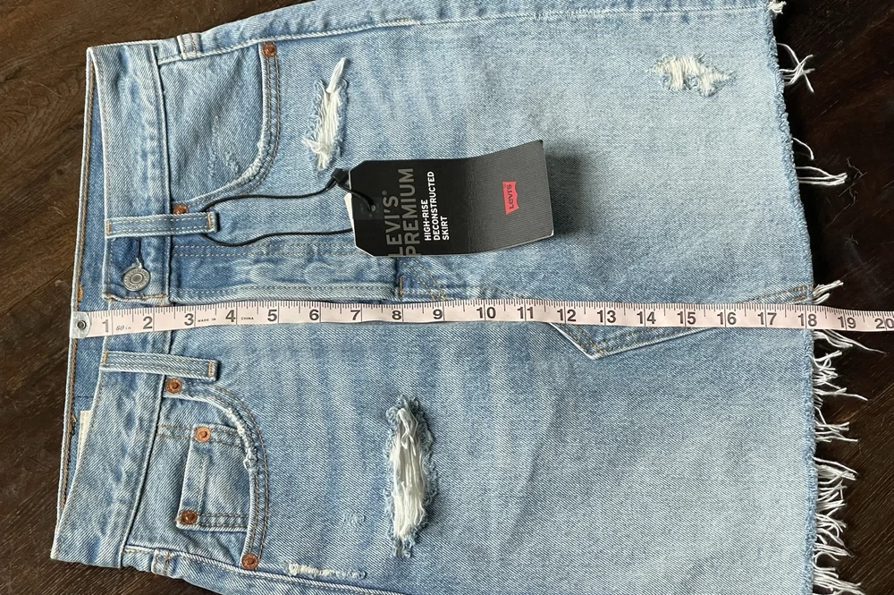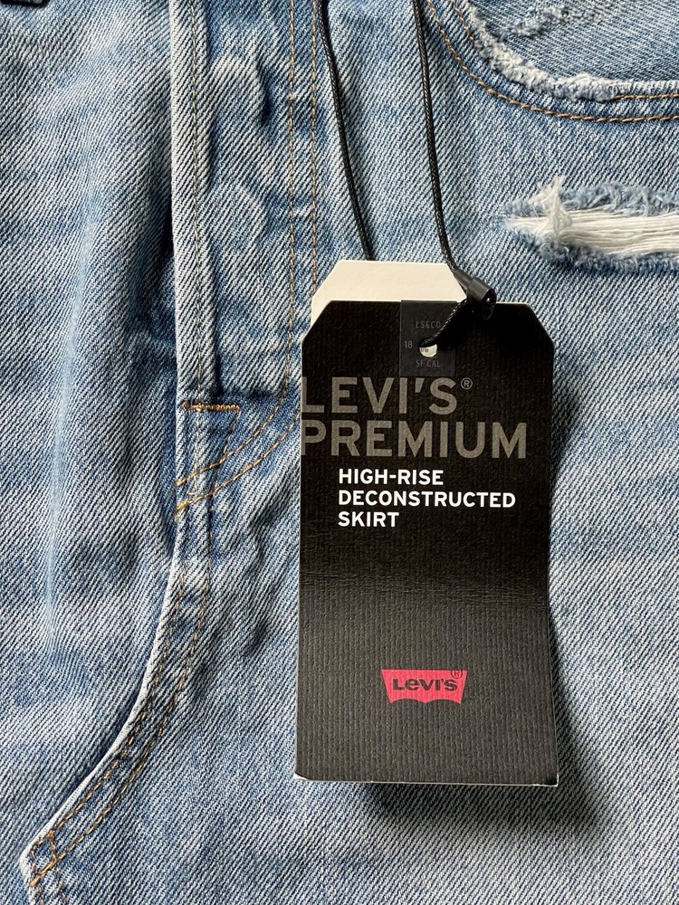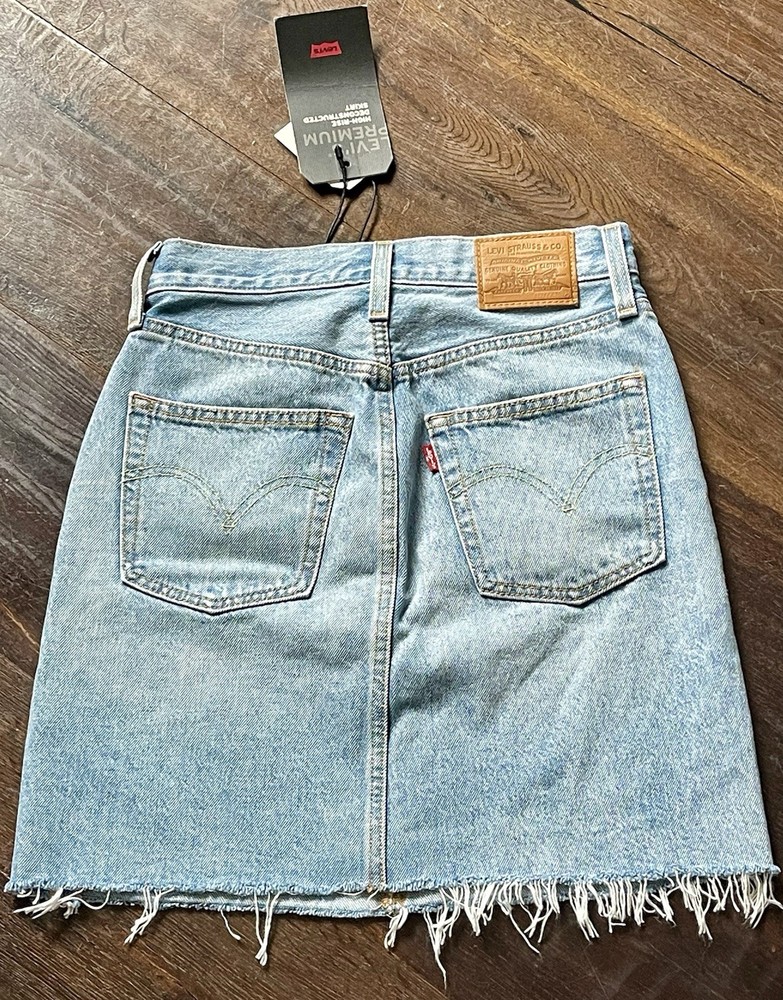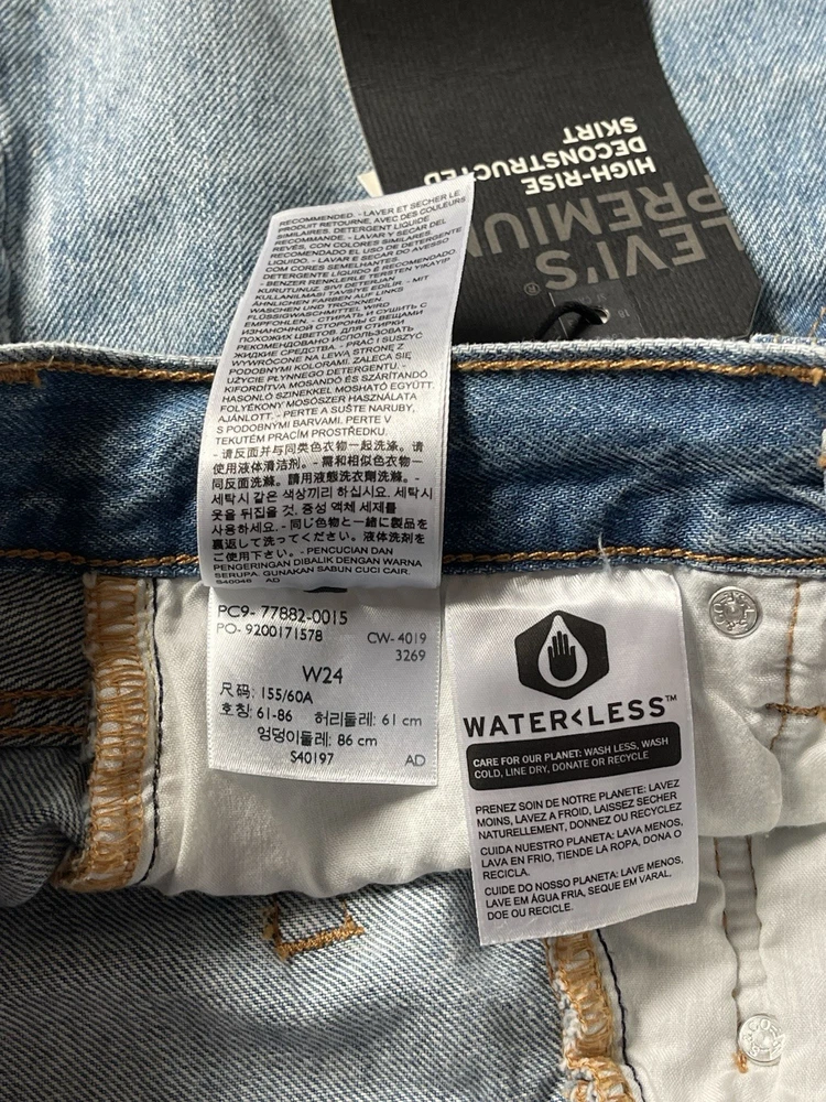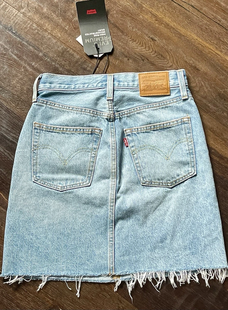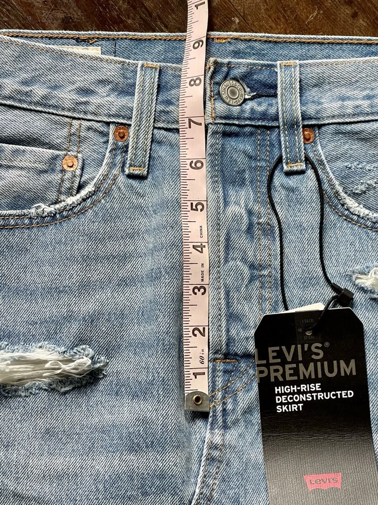 Brand new w tags Levi’s High Rise Deconstructed Denim Skirt Size 24” waist fits an XS please see photos for measurements. 100% cotton no stretch This is the perfect length not too short Levi’s Premium Brand higher quality denim $80 retail