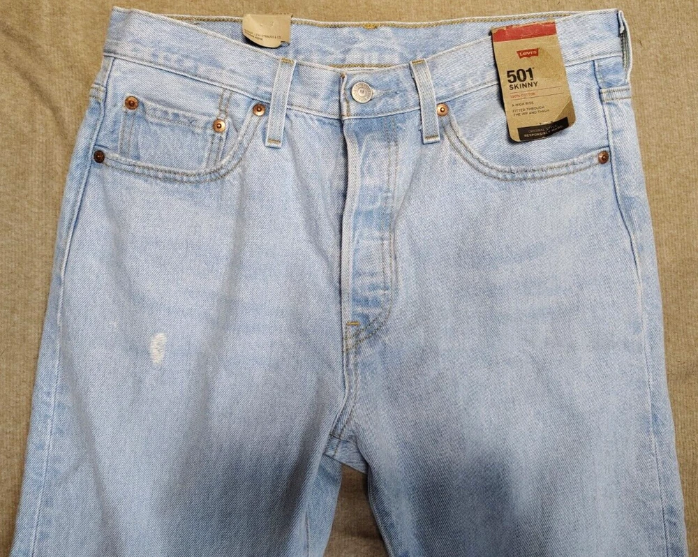NWT Levi's Women's 501 Skinny High Rise Button Fly Distressed Blue Jeans 29x28