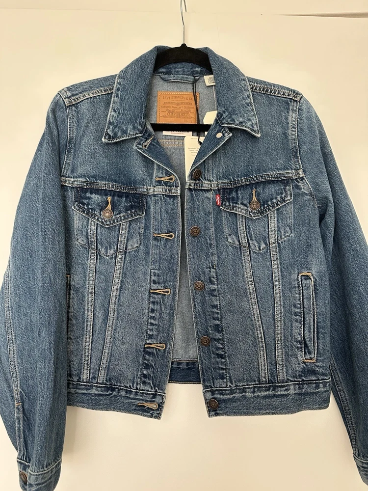 Up for sale is a New with Tags (NWT) Levi’s Women’s Original Trucker Jacket. This is the definitive denim jacket, a classic piece that has been a wardrobe essential since 1967. Product Details: • Brand: Levi’s Strauss & Co. • Model: Original Trucker Jacket • Size: Women's Small (S) • Color/Wash: Medium Wash Blue (e.g., "All Mine" or "Stone Wash") • Material: 100% Cotton (Non-stretch denim) • Design: Regular fit with a point collar, button-down placket, and iconic "V" stitching on the front. • Features: Two chest pockets with button-flap closures and two welt hand-warmer pockets. Condition: • Brand New with Tags: Never worn, pristine condition with all original retail tags attached. • Stored in a clean, smoke-free environment. Shipping & Handling: • Fast Shipping: We ship within 24 hours! • Husband & wife selling team dedicated to quality and customer service.