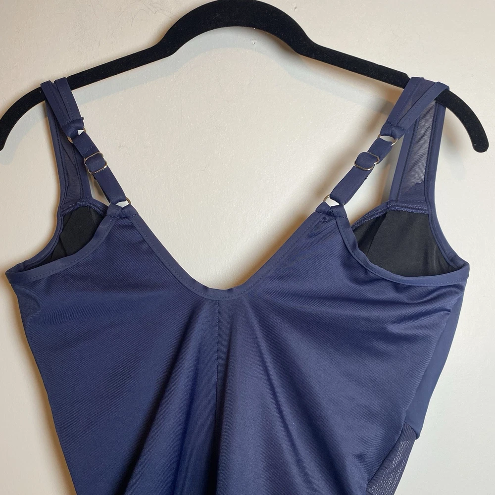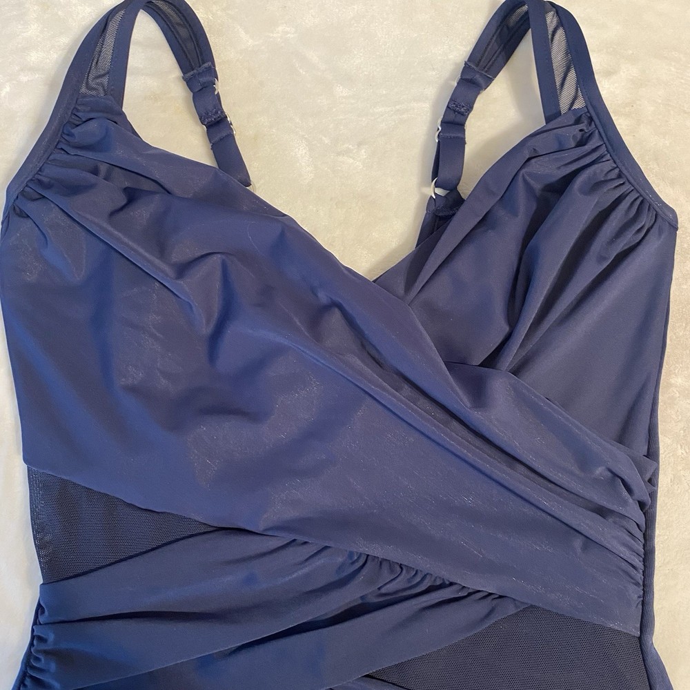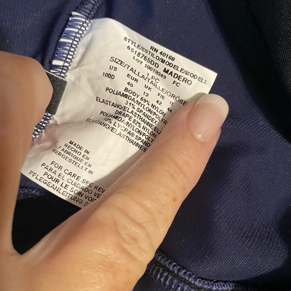 The Madero one piece features a stunning draped design with sheer panels. It’s thicker-set adjustable shoulder straps lead to a classic v-neckline. The shirring and peek-a-boo mesh detailing extends across the waist and hips providing undeniable coverage all-over control. A hidden underwire bra and scoop back work hand in hand to offer the support you crave in a solidly stunning one-piece. Underwire cups are lined with microfiber The neckline has covered elastic edges to keep in place Adjustable straps One piece provides full rear coverage New Smoke free Size 10 DD Cup Smoke free Fast shipping