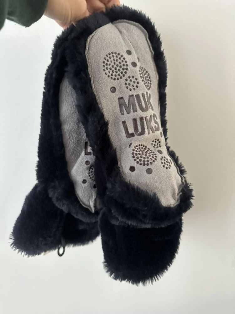 NWT MUK LUKS Infused with Shea Butter Slipper Booties Black Size 6-8 S/M