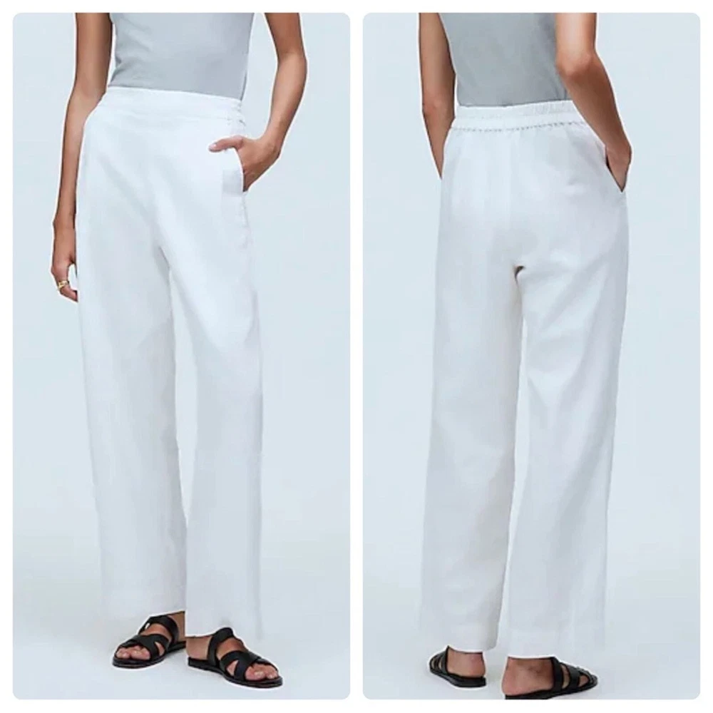 NWT Madewell Pull-On Straight Crop Pant NR174 White Linen Sz 2 New With Tags; no defects