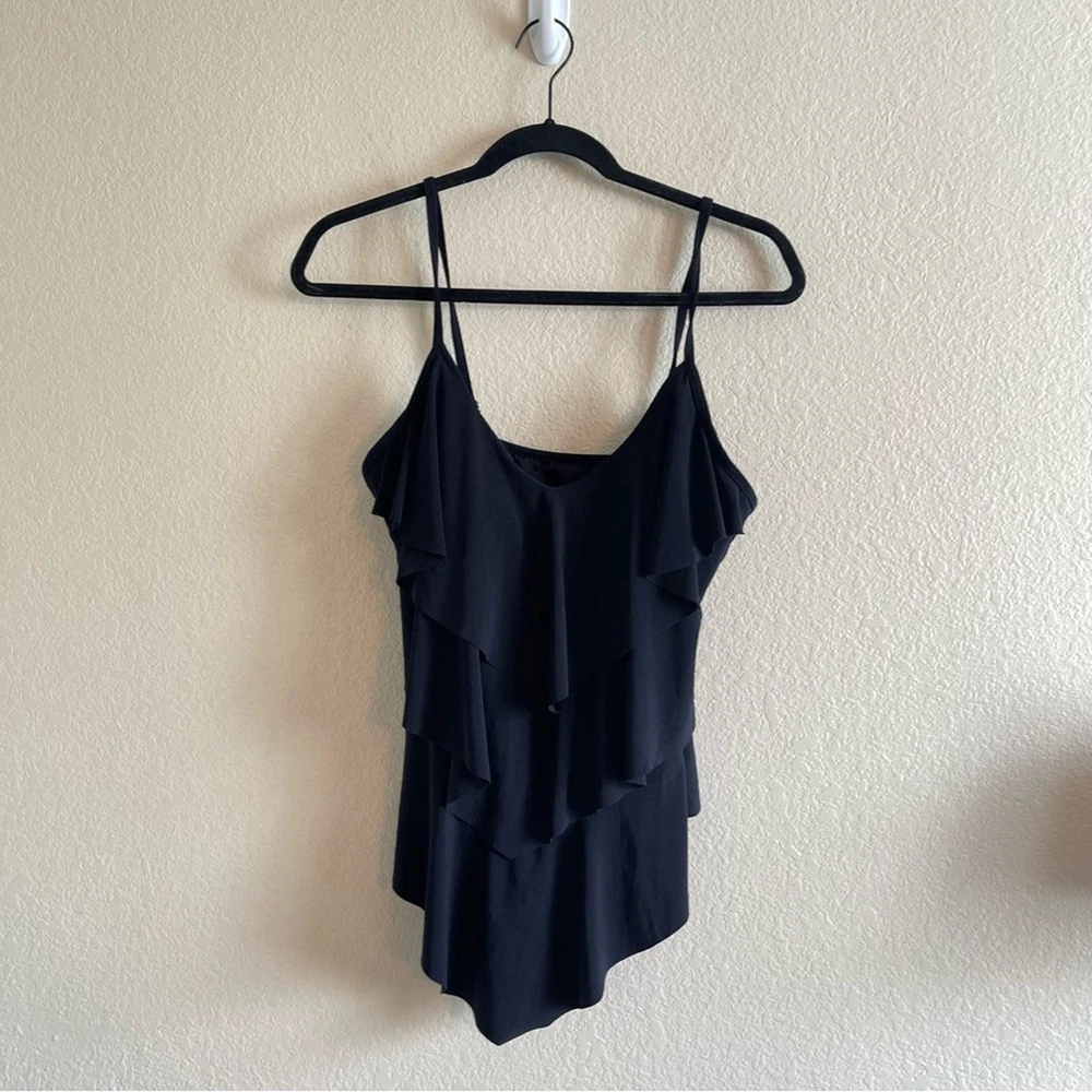 NWT Magicsuit Rita Tankini Top V Neck Tiered Black Swimwear Womens Size 10