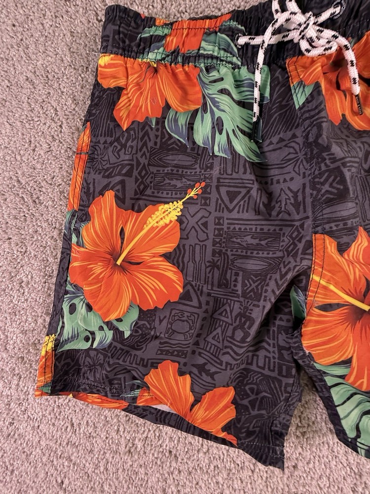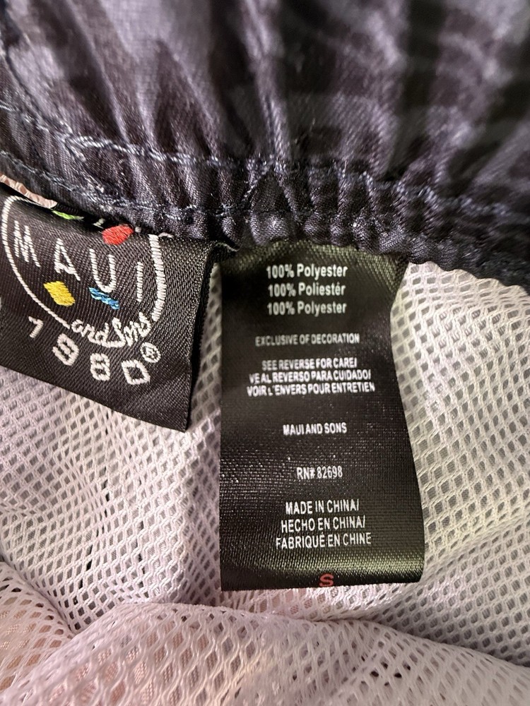 The NWT Maui and Sons Swim Trunks in Men’s Size Small are stylish swim bottoms featuring a floral pattern in various vibrant colors. Made of polyester material, these trunks are machine washable for easy care and maintenance. With a regular fit and a comfortable polyester lining, these swim trunks are perfect for men looking for a trendy and practical piece of swimwear for their next beach or pool outing. The Maui and Sons brand is known for its quality and attention to detail, making these swim trunks a great choice for any man's swimwear collection. 5000