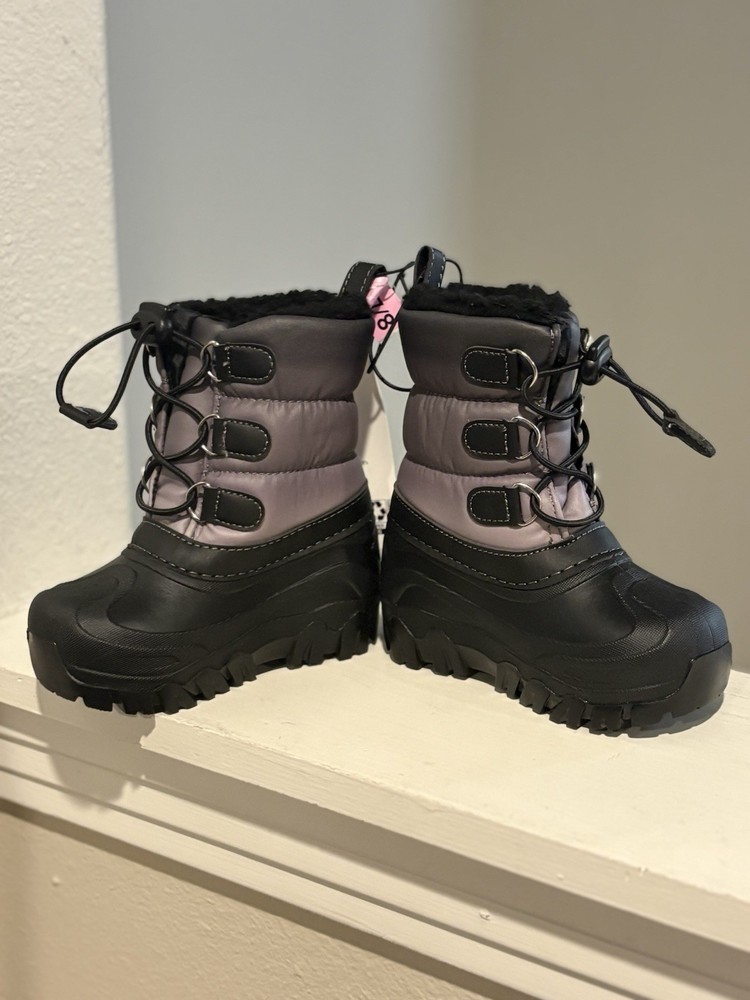 NWT Member's Mark Youth Kids Snow Boots, Size 7/8, Black Silver