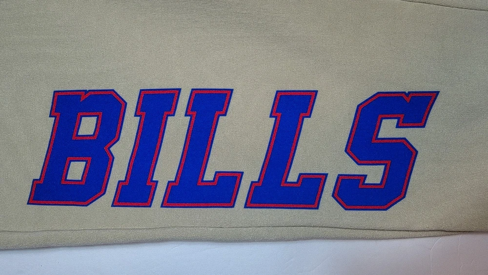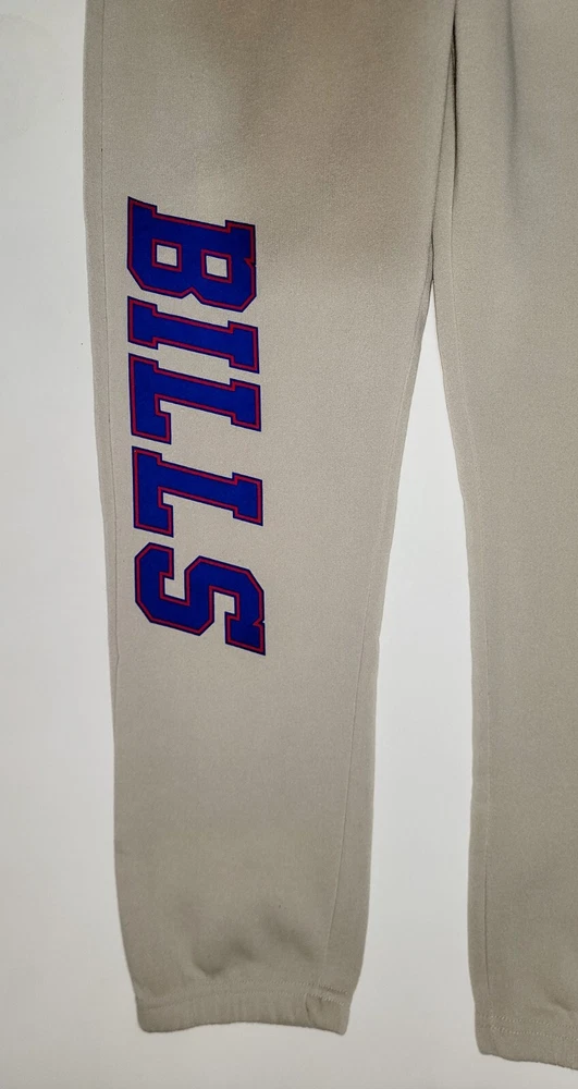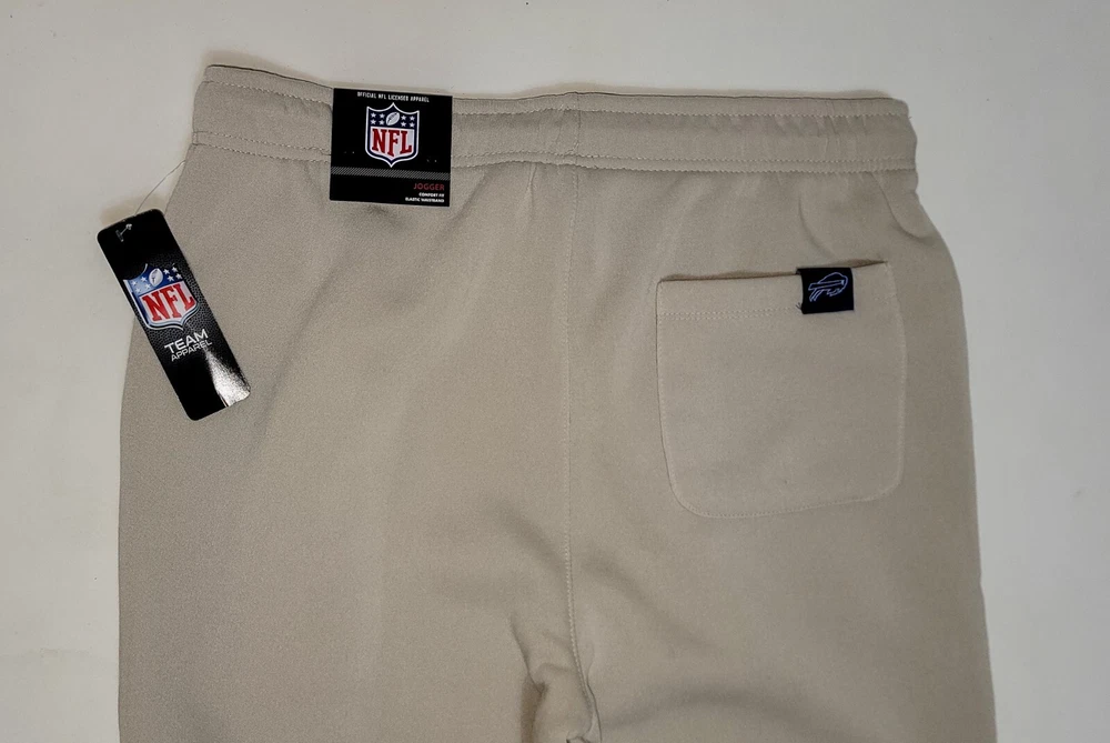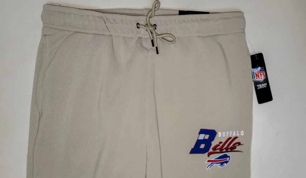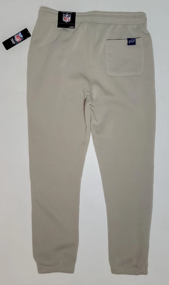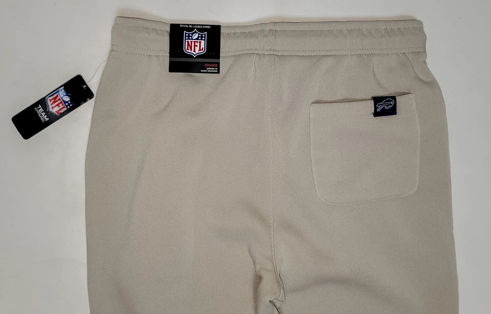 *** Brand New with Tags. 100% Authentic Officially Licensed Merch. With Original NFL Tags And Holograms. * ** Buffalo Bills NFL Team Branded Prmium Fleece Jogger Banded Hem Fleece Jogger Sweatpants Color: Sand with Red/White/Blue Graphics Material: 100% Polyester MSRP: $74.99 Product Details Nike Sportswear Club Fleece Suit up comfortably for a day spent kicking back while showcasing your love for the Bills with these Premium Fleece sweatpants from NFL Teal Apparel Branded. These bottoms are perfect for lounging around your home or taking in the action at the game. Between the undeniable team graphics, elastic waistband and comfortable fleece lining, these are sure to be your favorite Buffalo Bills pants in your casual collection. Soft Comfort Heavyweight Brushed-back fleece fabric feels soft and smooth. Elastic waistband with an adjustable drawcord lets you personalize the fit. Standard fit for a relaxed, easy feel Screen print graphics Two side pockets One Back Pocket Elastic waistband Fleece lining Moisture Wicking Material: 100% Polyester Machine wash, tumble dry low Officially licensed ATTENTION: PLEASE READ THE ENTIRE DESCRIPTION AND VIEW ALL PHOTOS BEFORE PROCEEDING WITH THE BUY IT NOW OPTION. Store Policy ** Photos are the exact product in this auction! 100% Authentic. Stored in a Pet Free Environment. Please familiarize yourself with the sizing of Shirts, Sneakers and Caps before buying to ensure you are buying the correct size. There are no returns accepted for fit. Once tried on, these items are no longer considered Deadstock ** ** Once photographed, all products are sealed into a new polybag and stored in a dust, odor, pet, and smoke free environment ready to be shipped out Any listed pair of sneakers that is over 8 years old may or may not be suitable for wear. Those items should be considered wear at your own risk. **