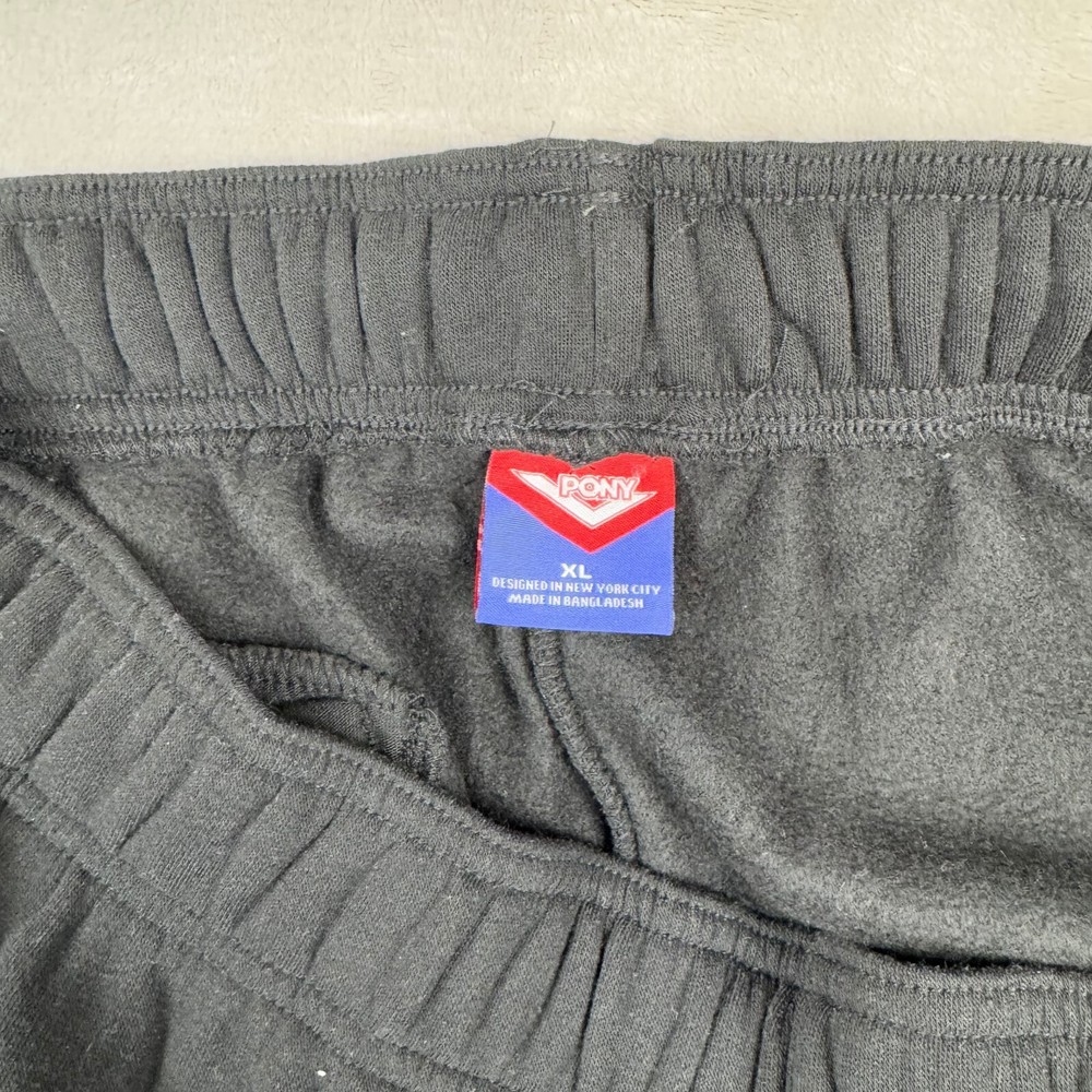 Size Type: Regular Closure: Drawstring Color: Black Features: Comfort, Easy Care, Elastic Waist, Cuffed Ankles Style: Sweatpants Type: Pants Season: Fall, Spring, Summer, Winter Performance/Activity: Everyday, Sleep, Lounge Leg Style: Straight Fit: Regular Department: Men Fabric Type: Blended Fabric Brand: PONY Size: XL Vintage: No Garment Care: Machine Washable Material: Poly/Rayon/Spandex Occasion: Activewear, Casual, Travel Theme: 90s, Athleisure, Classic
