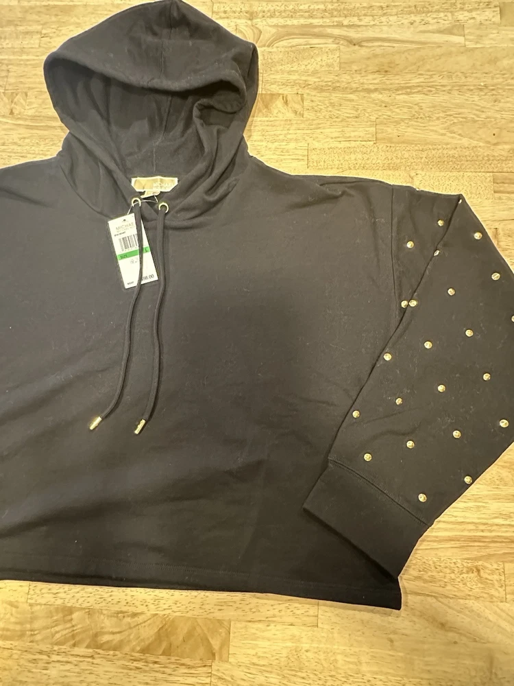NWT Michael Kors Gold Studded Black Hoodie Women's Small 2024 MK Designer