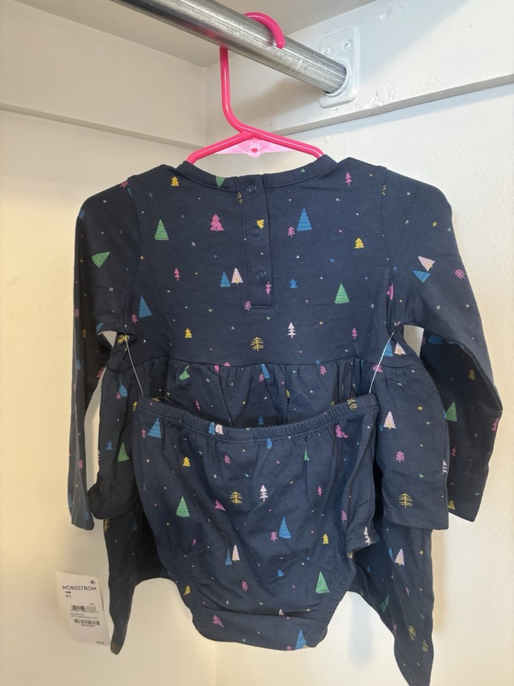 New With Tags - Navy Tucker and Tate 18 Mo Old 2 Piece Dress Set, sold exclusively at Nordstrom. Set includes a long sleeve dress and cute diaper cover bottoms. Smoke free home.